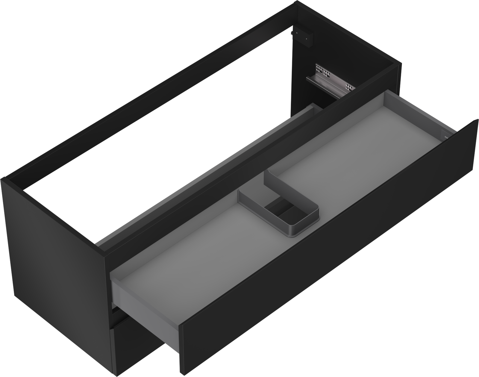 The cutout in the drawer is designed in such a way as to accommodate the siphon, which is essential in sink installations. This allows the furniture to be fully functional without having to give up drawer space for the installation.