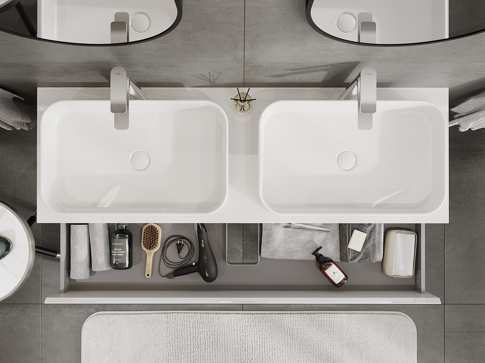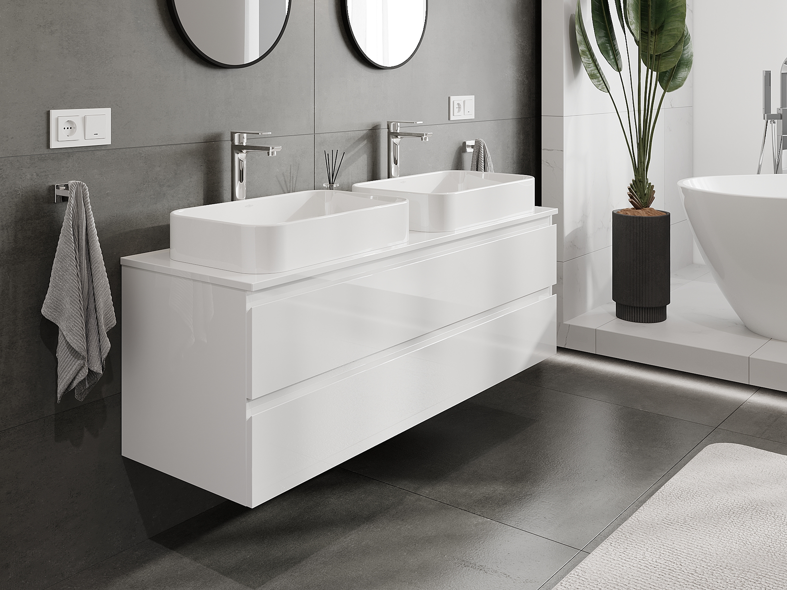 Our modular bathroom furniture can be combined in various colour configurations, allowing for complete personalisation. You can choose both the appearance and functions of individual elements, enabling you to adapt the furniture to your own stylistic and functional preferences.