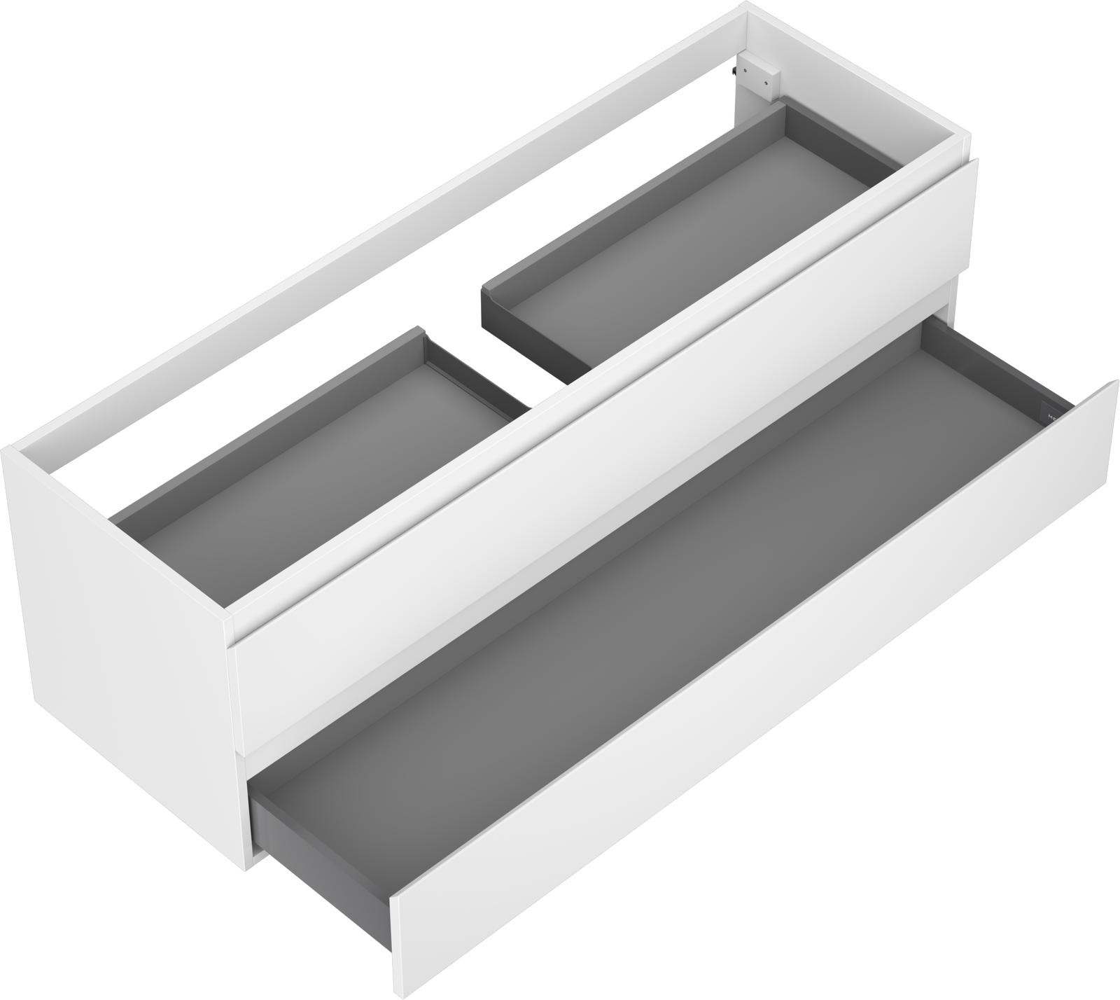 The cutout in the drawer is designed in such a way as to accommodate the siphon, which is essential in sink installations. This allows the furniture to be fully functional without having to give up drawer space for the installation.