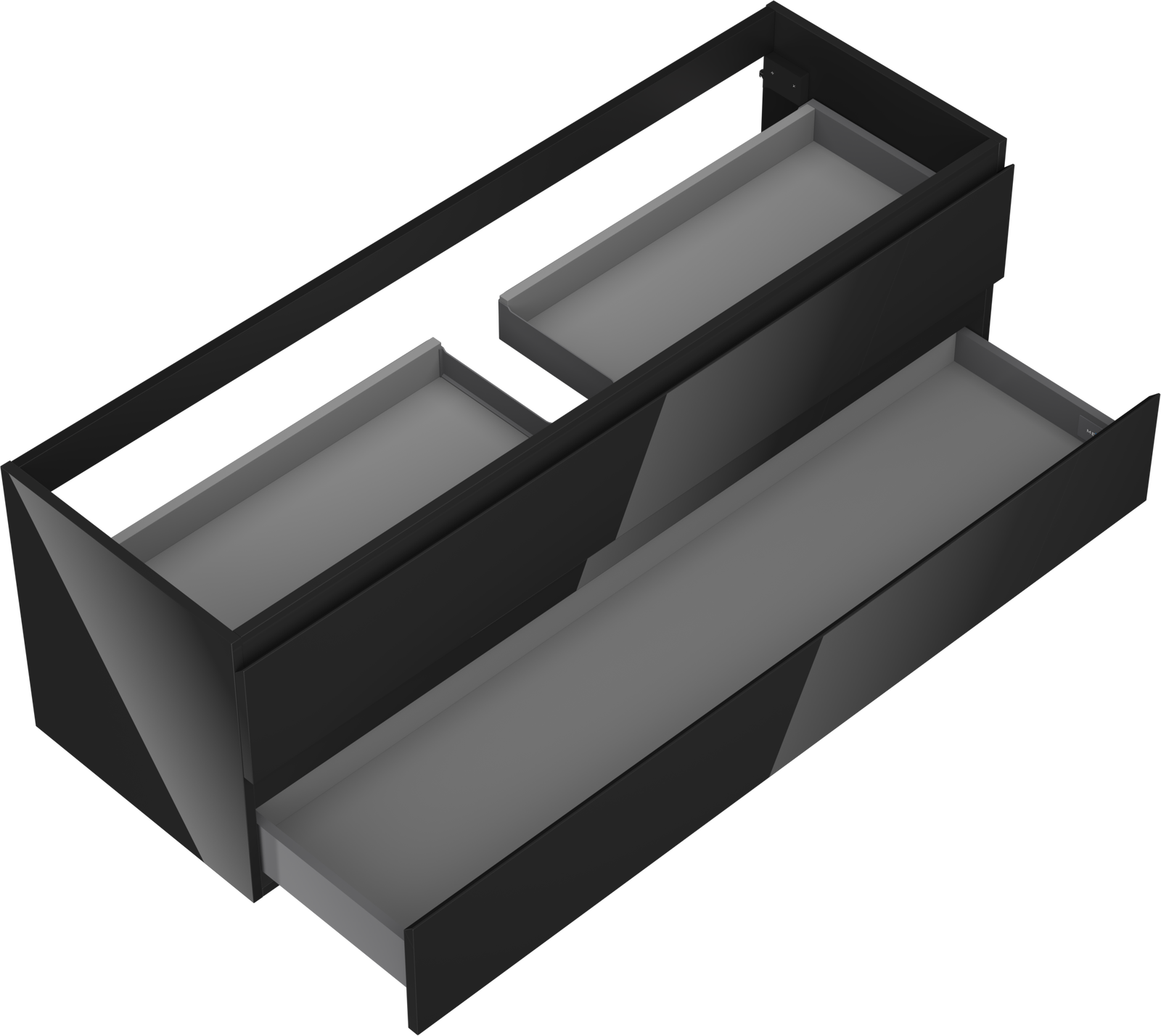 Mexen Orio 140 cm bathroom cabinet, 2 drawers, black gloss - 91A10-14047-2-BFF70