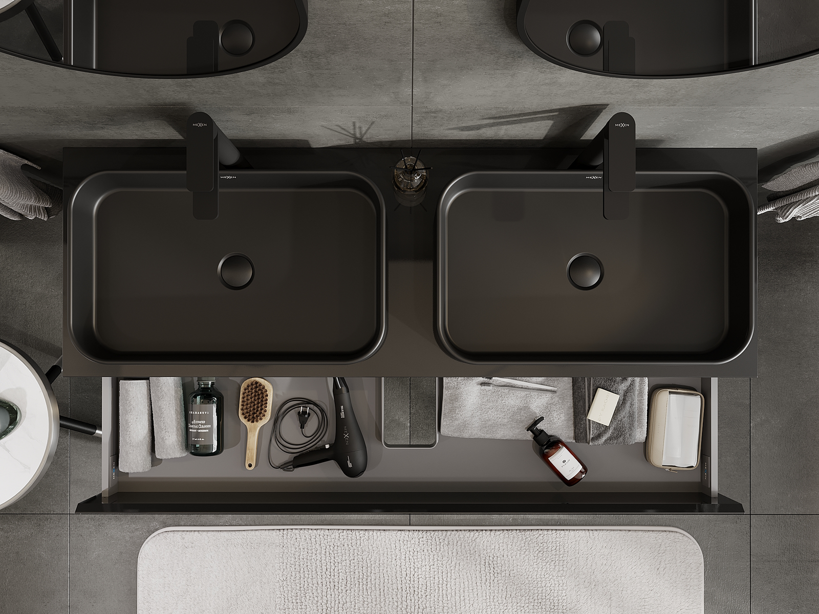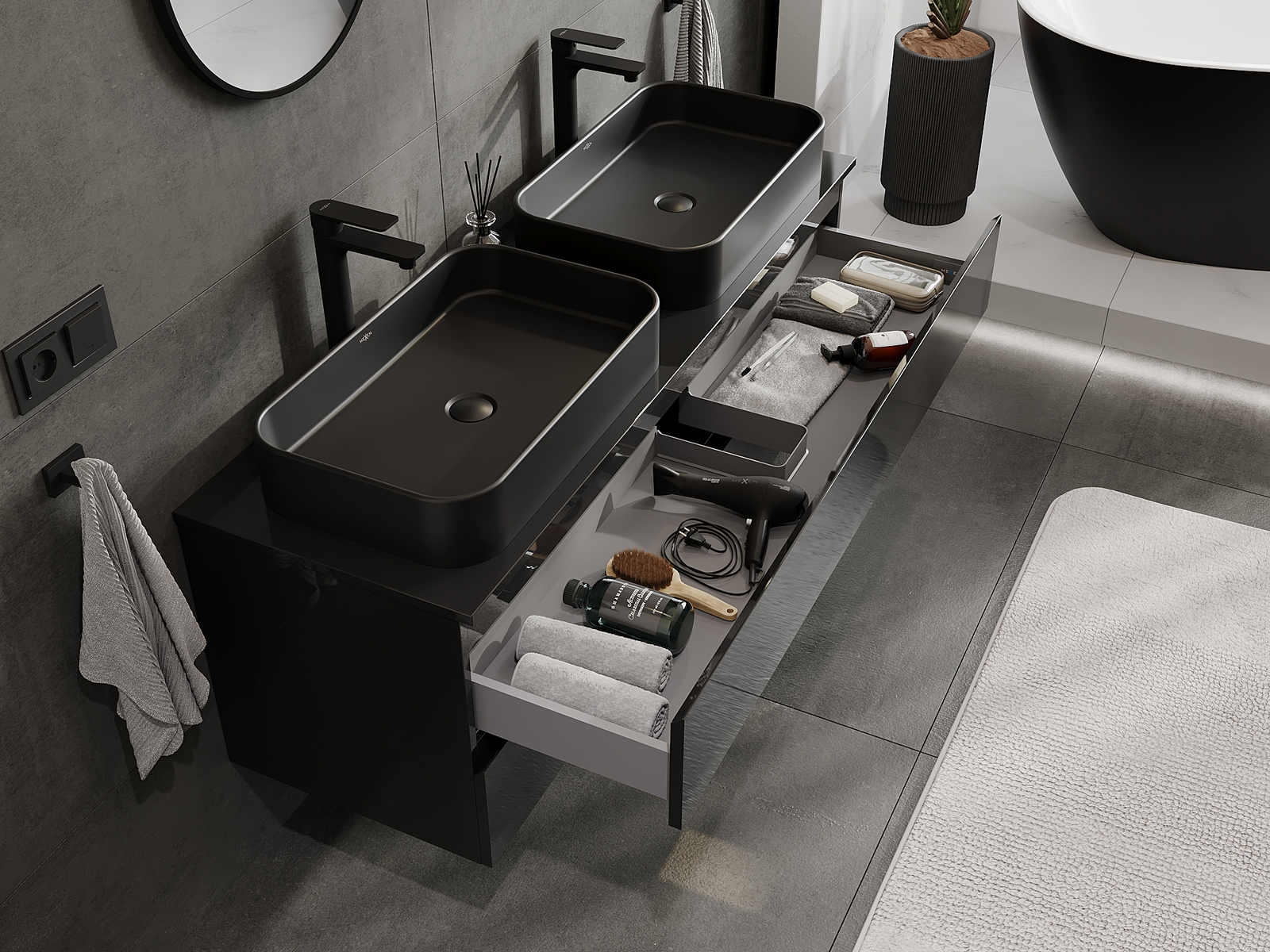 Our modular bathroom furniture can be combined in various colour configurations, allowing for complete personalisation. You can choose both the appearance and functions of individual elements, enabling you to adapt the furniture to your own stylistic and functional preferences.