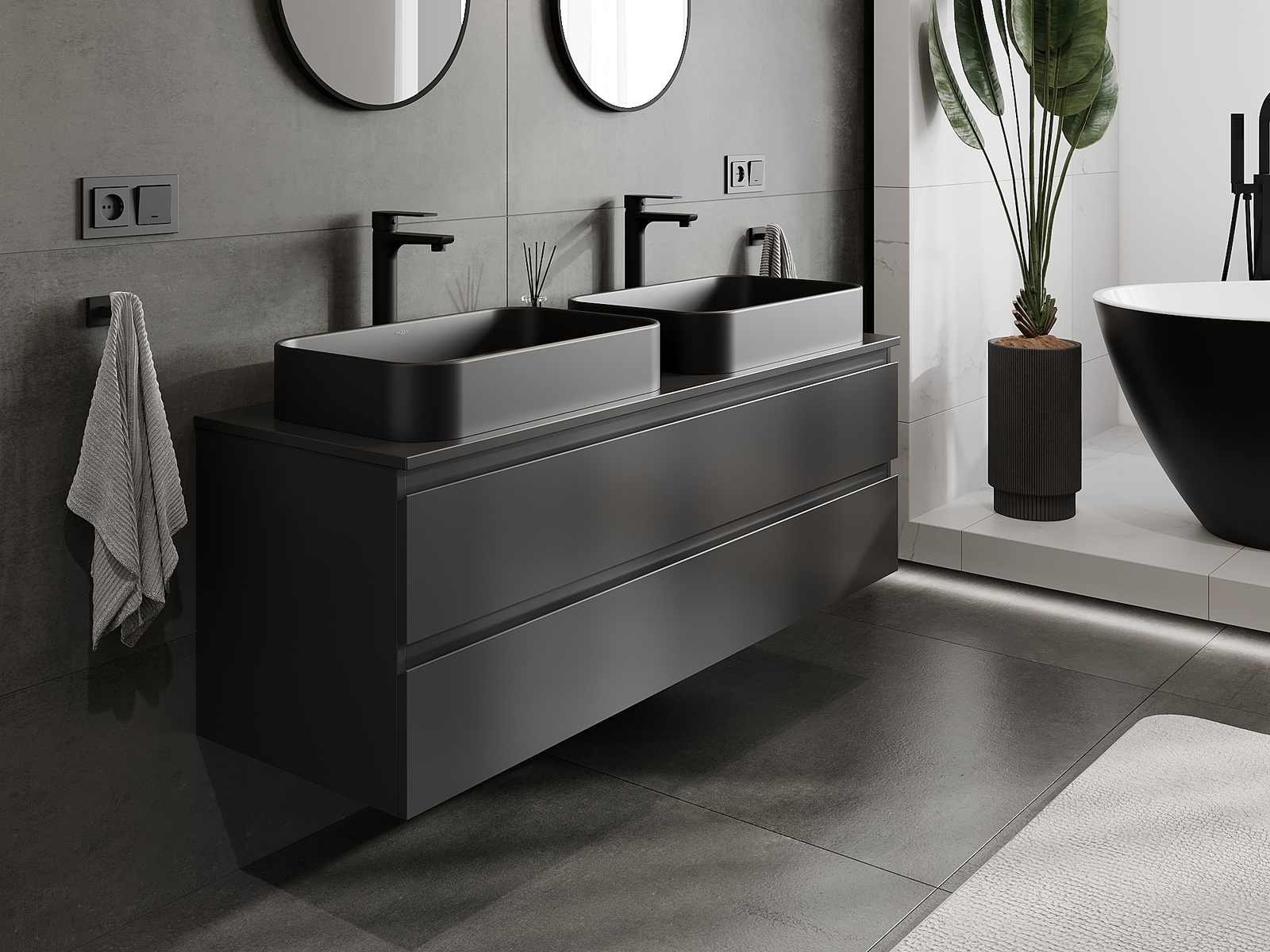 Our modular bathroom furniture can be combined in various colour configurations, allowing for complete personalisation. You can choose both the appearance and functions of individual elements, enabling you to adapt the furniture to your own stylistic and functional preferences.