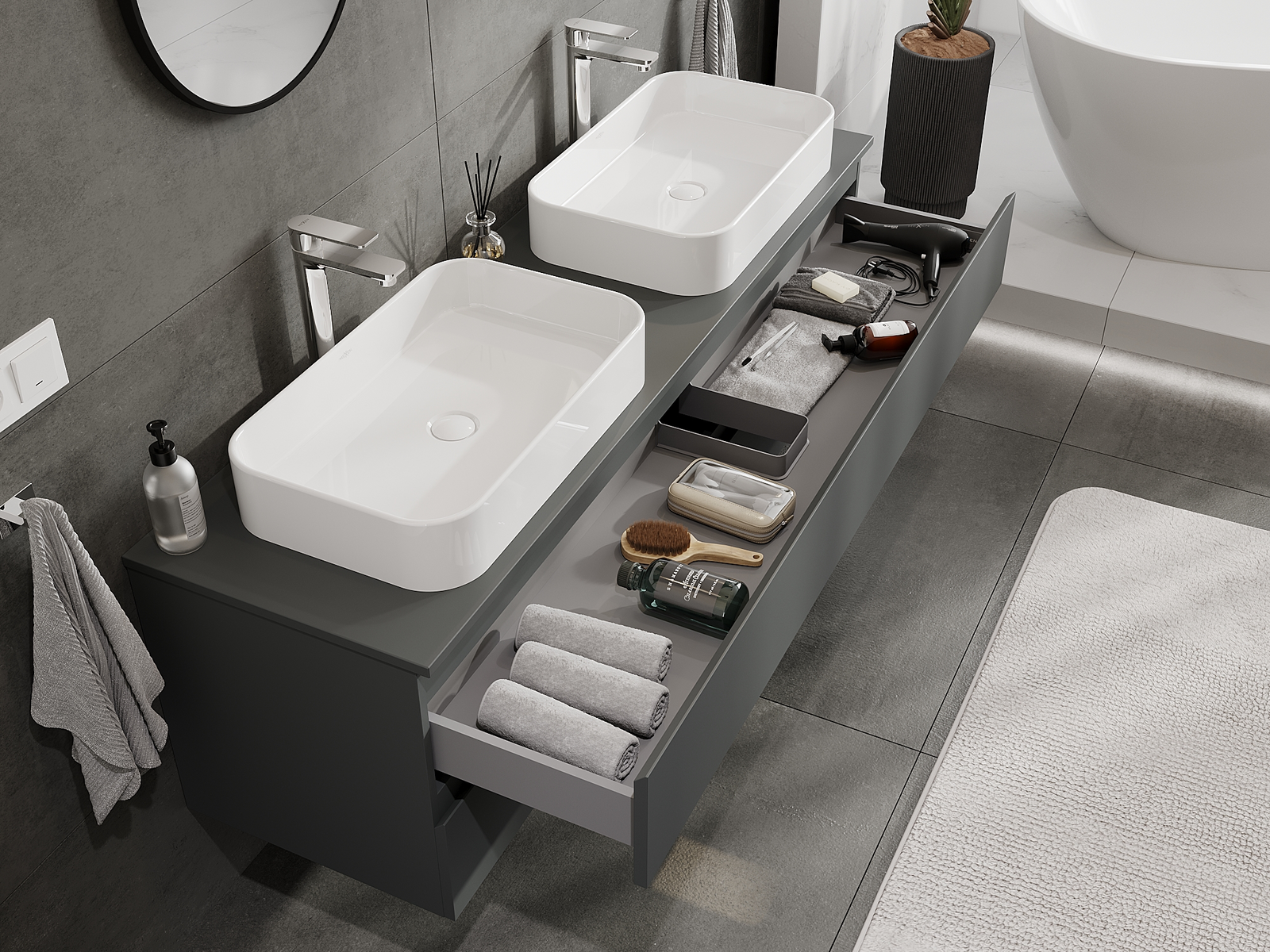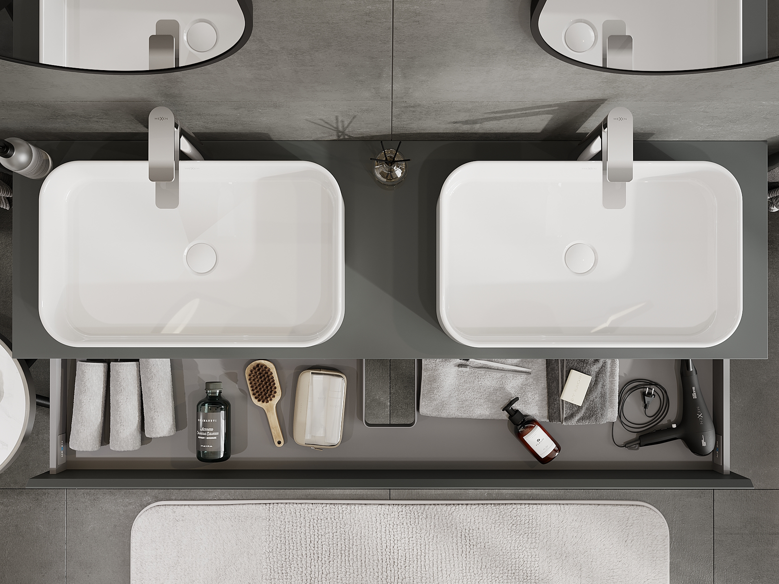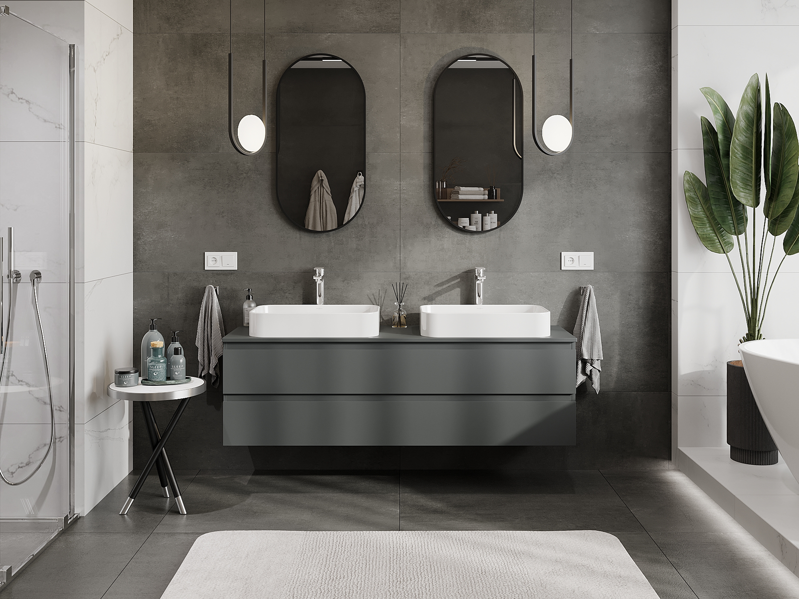 Our modular bathroom furniture can be combined in various colour configurations, allowing for complete personalisation. You can choose both the appearance and functions of individual elements, enabling you to adapt the furniture to your own stylistic and functional preferences.