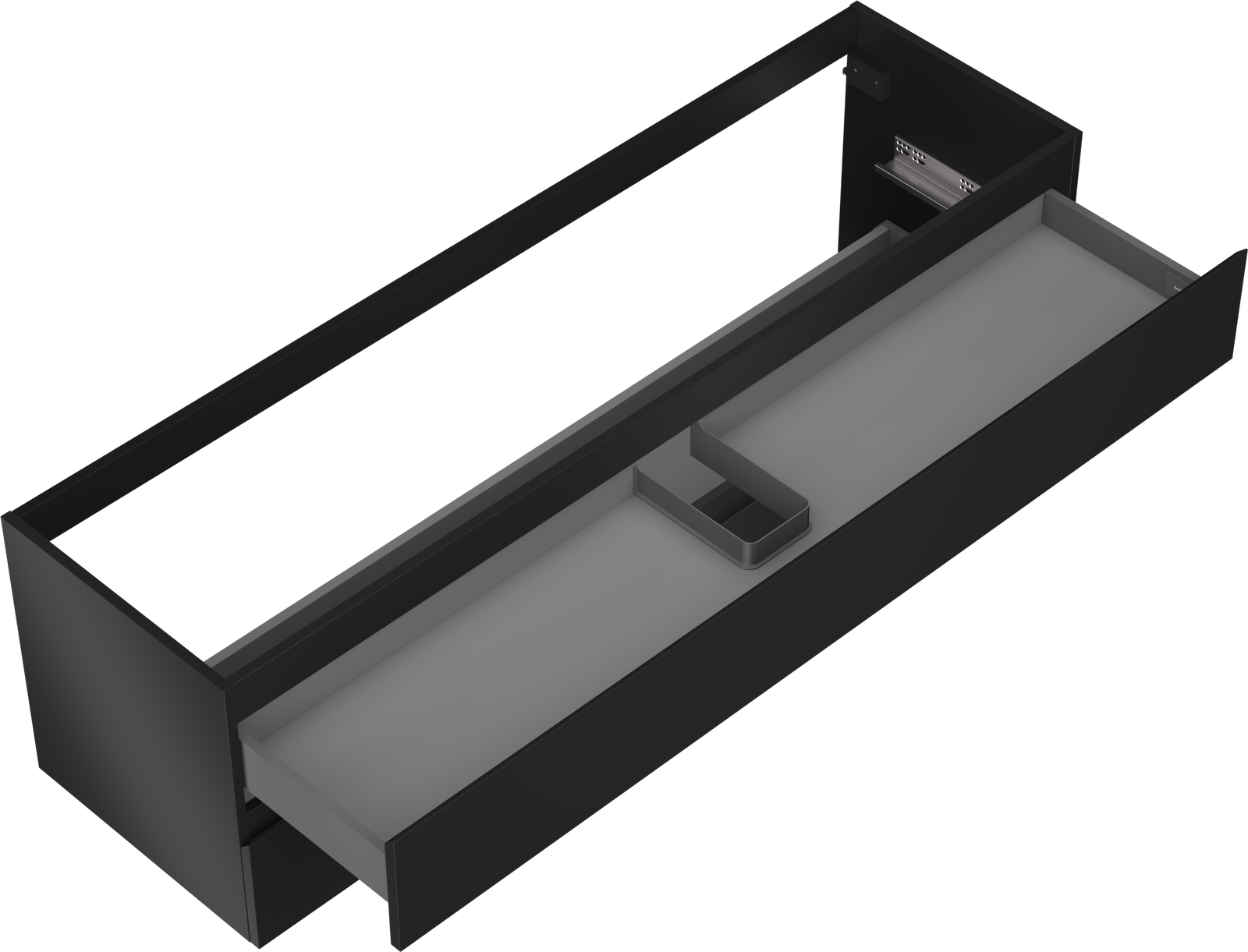 The cutout in the drawer is designed in such a way as to accommodate the siphon, which is essential in sink installations. This allows the furniture to be fully functional without having to give up drawer space for the installation.
