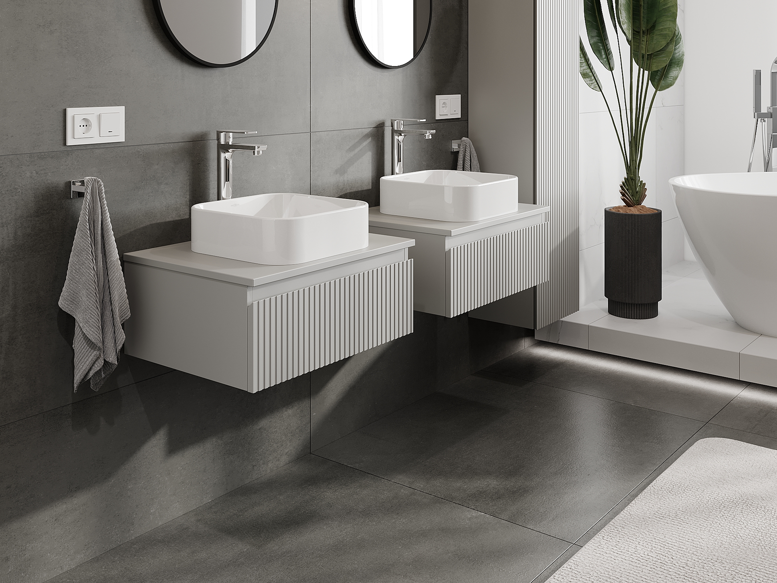 Our modular bathroom furniture can be combined in various colour configurations, allowing for complete personalisation. You can choose both the appearance and functions of individual elements, enabling you to adapt the furniture to your own stylistic and functional preferences.