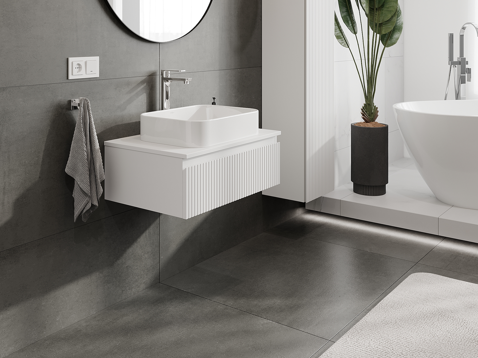 Our modular bathroom furniture can be combined in various colour configurations, allowing for complete personalisation. You can choose both the appearance and functions of individual elements, enabling you to adapt the furniture to your own stylistic and functional preferences.