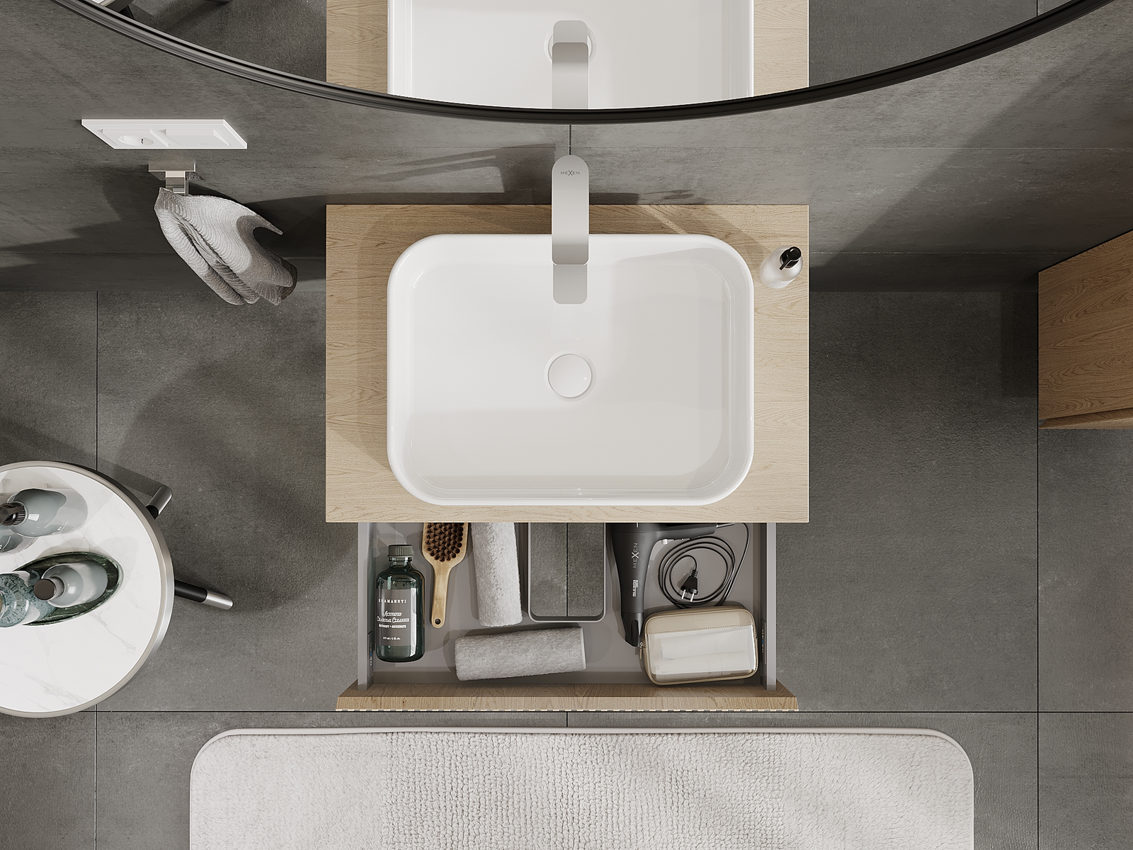 Our modular bathroom furniture can be combined in various colour configurations, allowing for complete personalisation. You can choose both the appearance and functions of individual elements, enabling you to adapt the furniture to your own stylistic and functional preferences.