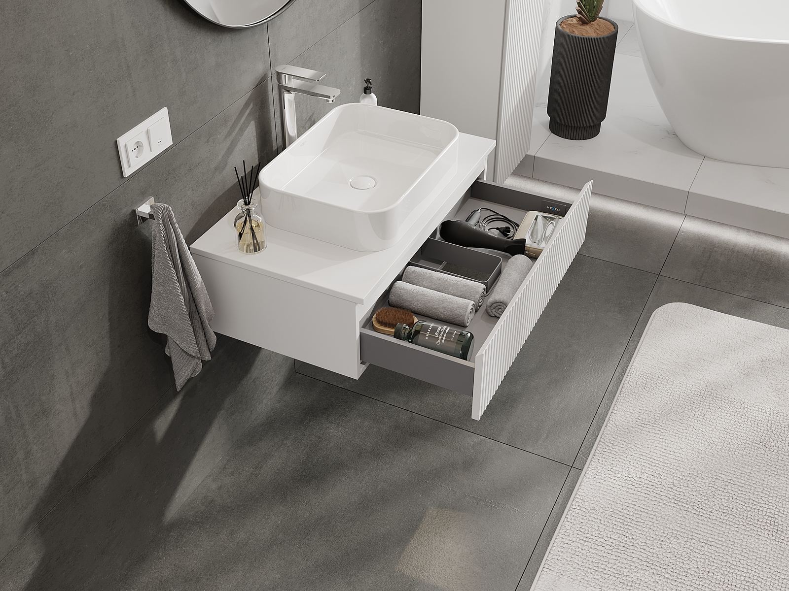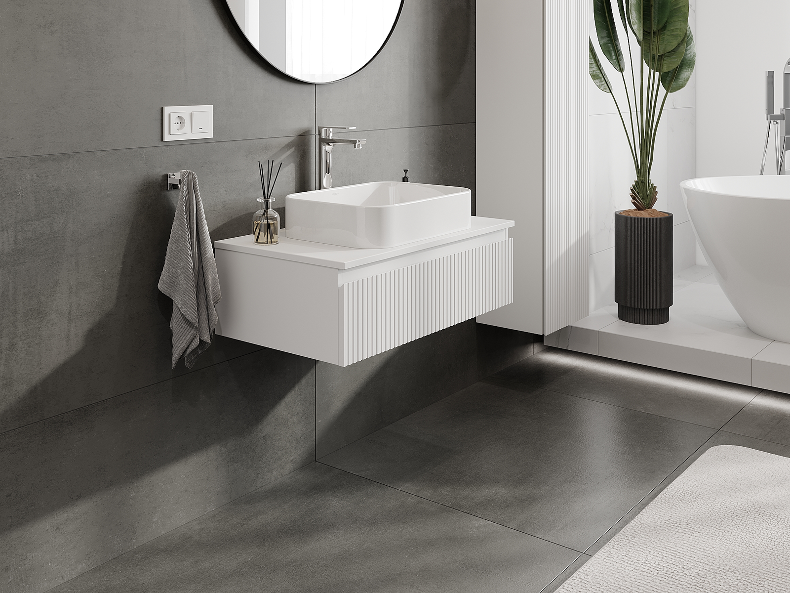Mexen Rivel bathroom cabinet for washbasin 80 cm, 1 drawer, grooved, white matte - 91A20-08023-1-BF01