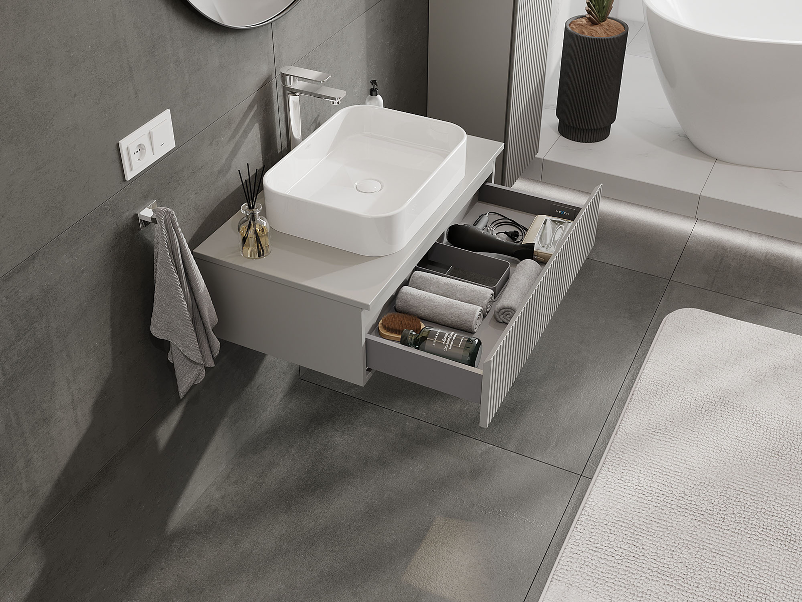 Our modular bathroom furniture can be combined in various colour configurations, allowing for complete personalisation. You can choose both the appearance and functions of individual elements, enabling you to adapt the furniture to your own stylistic and functional preferences.