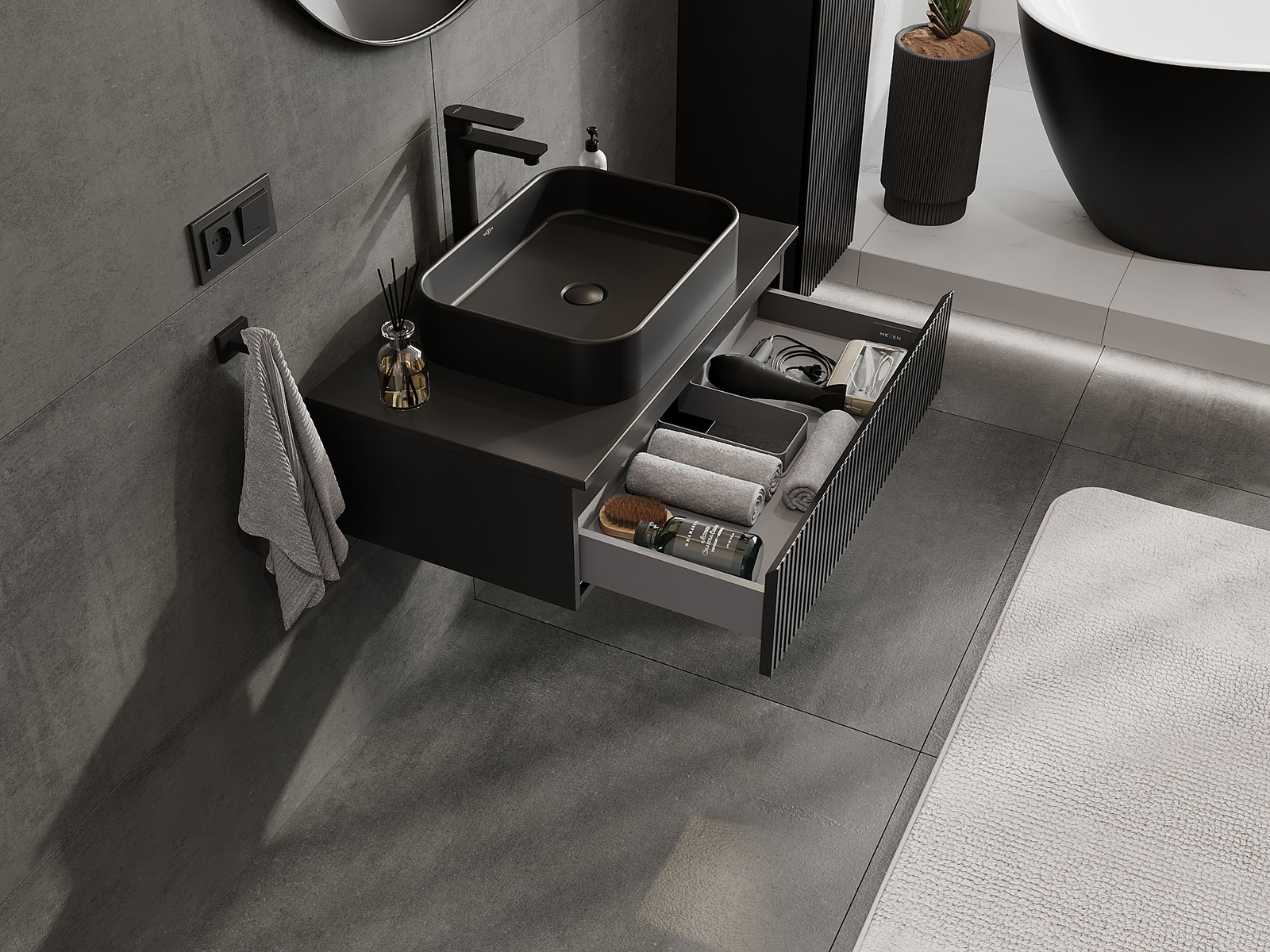Mexen Rivel bathroom vanity unit 80 cm, 1 drawer, fluted, black matte - 91A20-08023-1-BF71