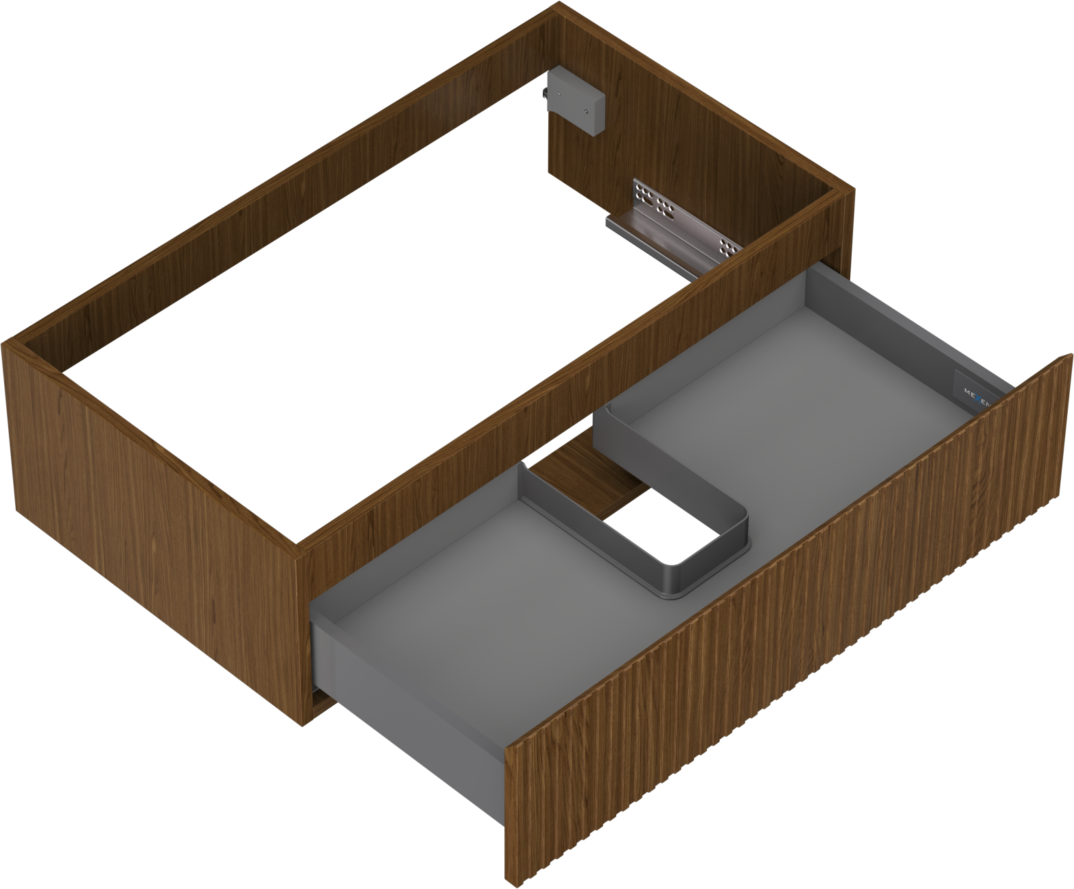 The cutout in the drawer is designed in such a way as to accommodate the siphon, which is essential in sink installations. This allows the furniture to be fully functional without having to give up drawer space for the installation.