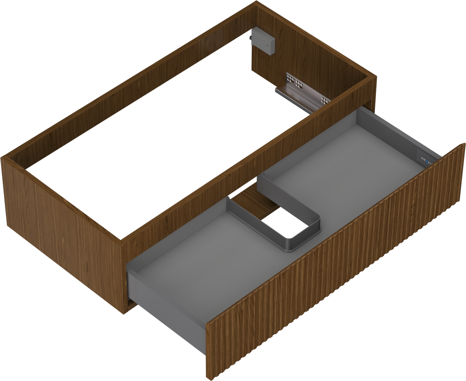 The cutout in the drawer is designed in such a way as to accommodate the siphon, which is essential in sink installations. This allows the furniture to be fully functional without having to give up drawer space for the installation.