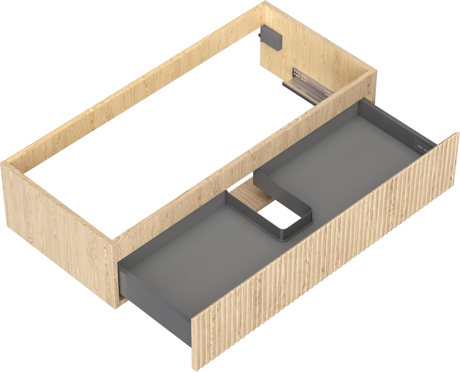 The cutout in the drawer is designed in such a way as to accommodate the siphon, which is essential in sink installations. This allows the furniture to be fully functional without having to give up drawer space for the installation.