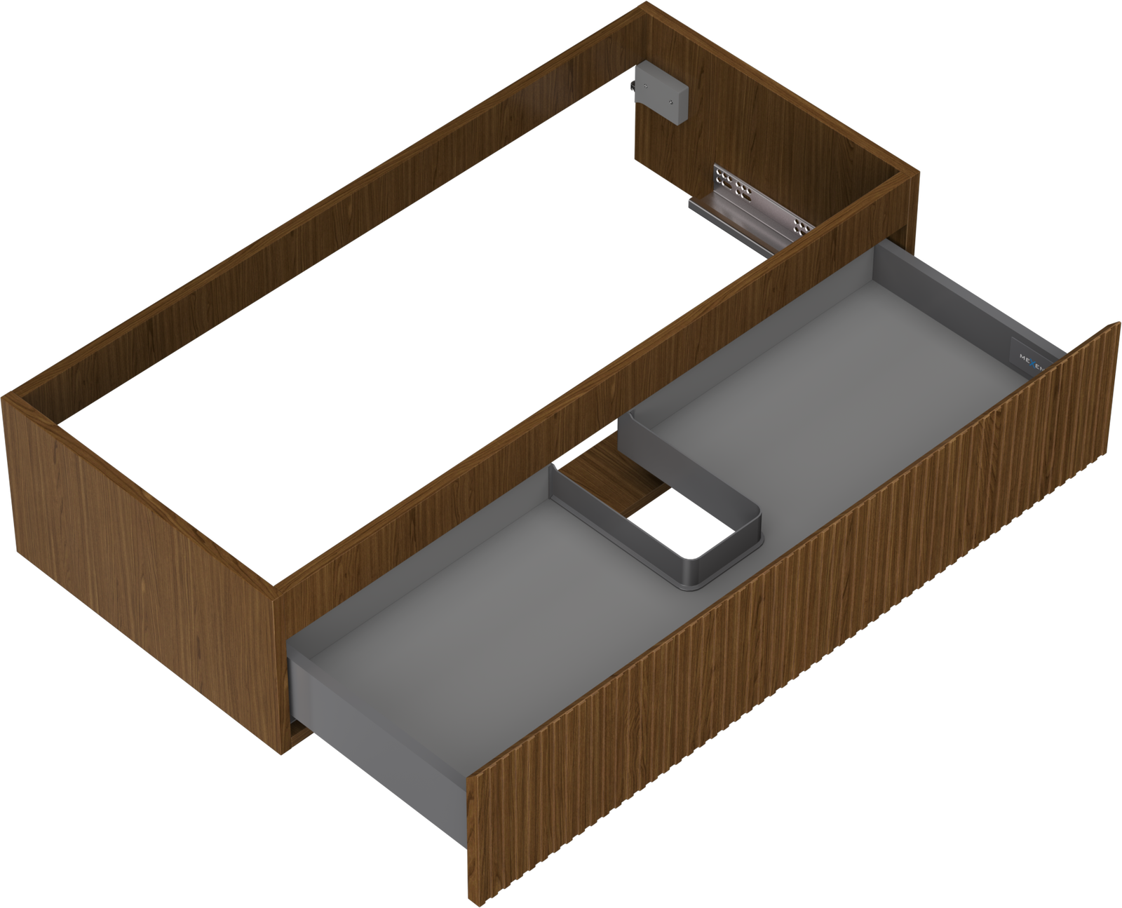 The cutout in the drawer is designed in such a way as to accommodate the siphon, which is essential in sink installations. This allows the furniture to be fully functional without having to give up drawer space for the installation.