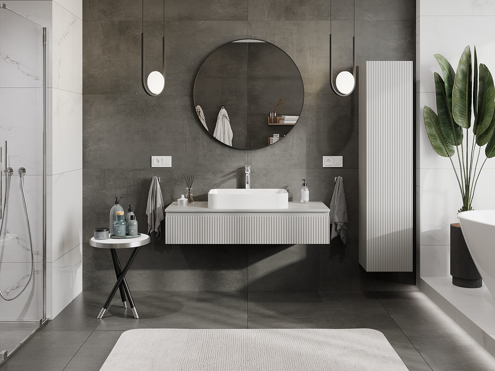 Our modular bathroom furniture can be combined in various colour configurations, allowing for complete personalisation. You can choose both the appearance and functions of individual elements, enabling you to adapt the furniture to your own stylistic and functional preferences.