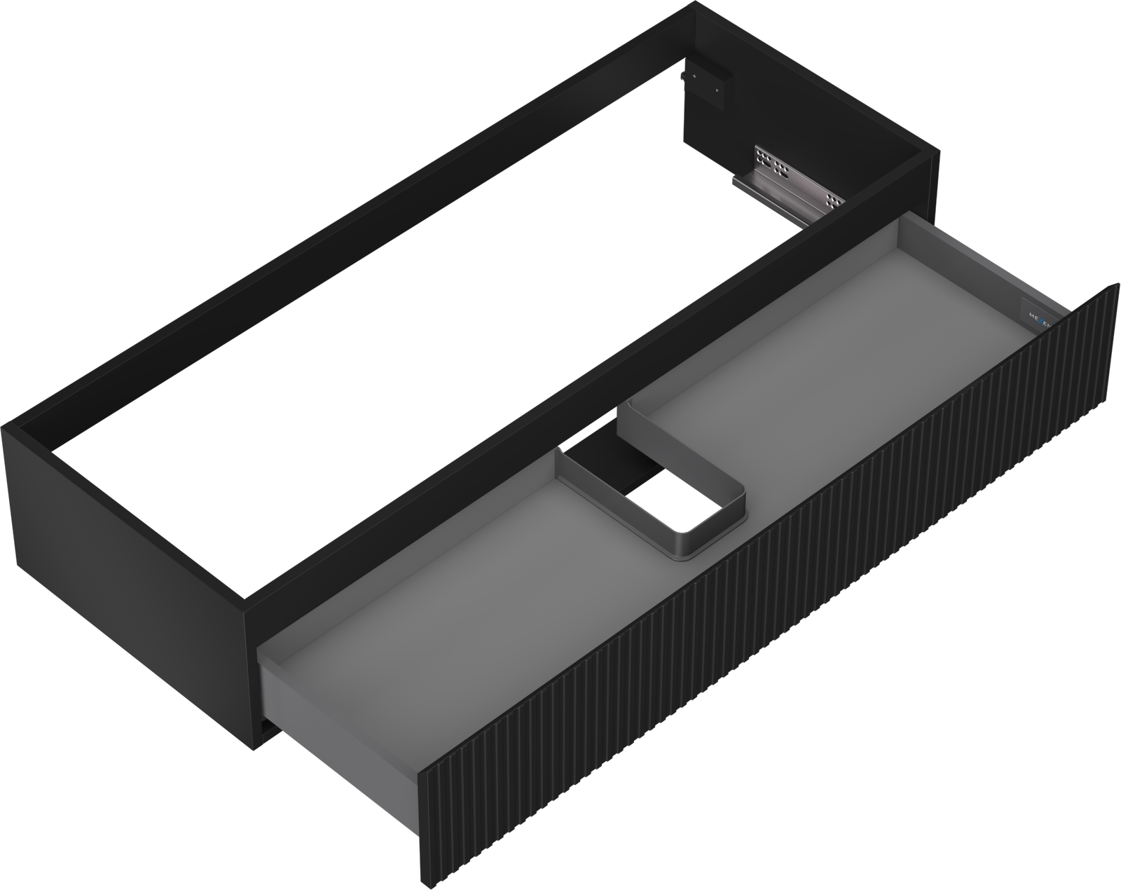 The cutout in the drawer is designed in such a way as to accommodate the siphon, which is essential in sink installations. This allows the furniture to be fully functional without having to give up drawer space for the installation.