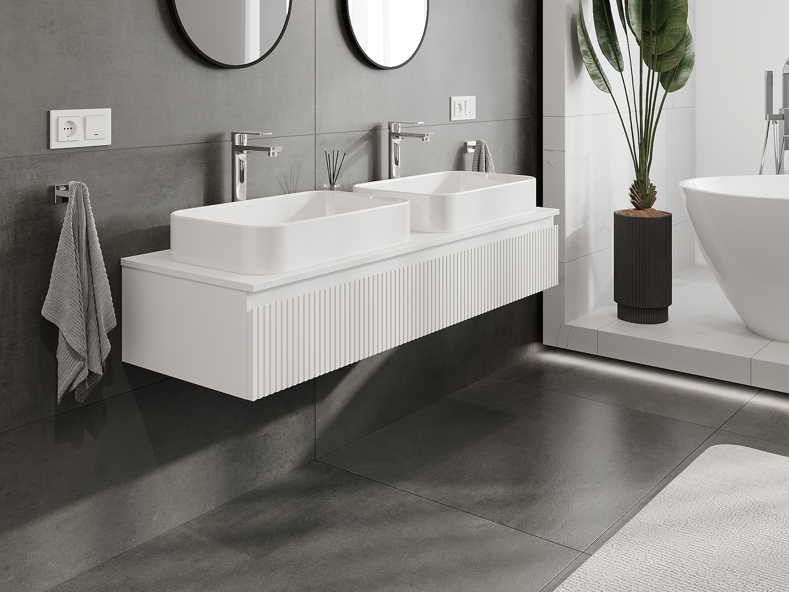 Mexen Rivel bathroom cabinet under-sink 140 cm, 1 drawer, fluted, white matte - 91A20-14023-1-BF01