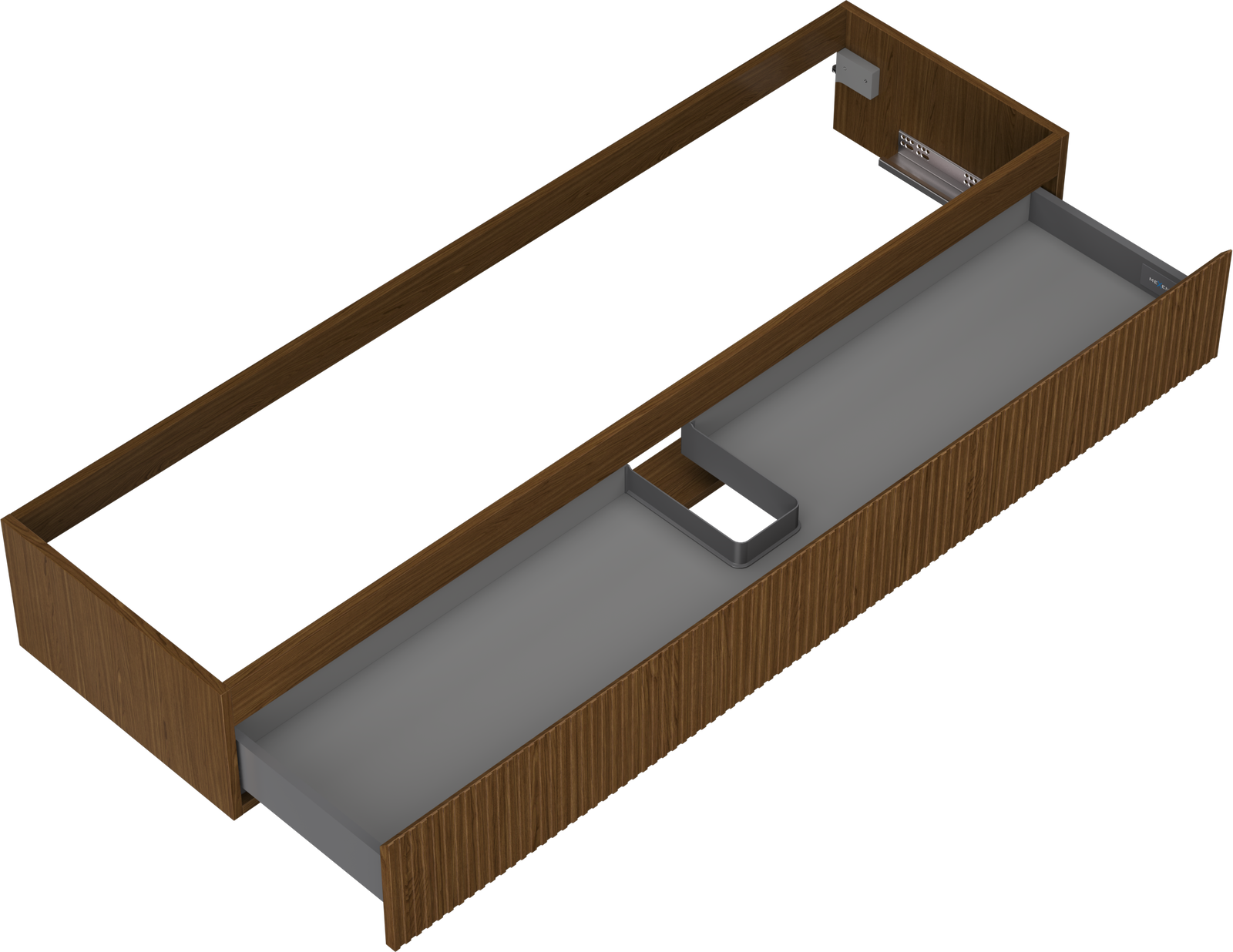 The cutout in the drawer is designed in such a way as to accommodate the siphon, which is essential in sink installations. This allows the furniture to be fully functional without having to give up drawer space for the installation.