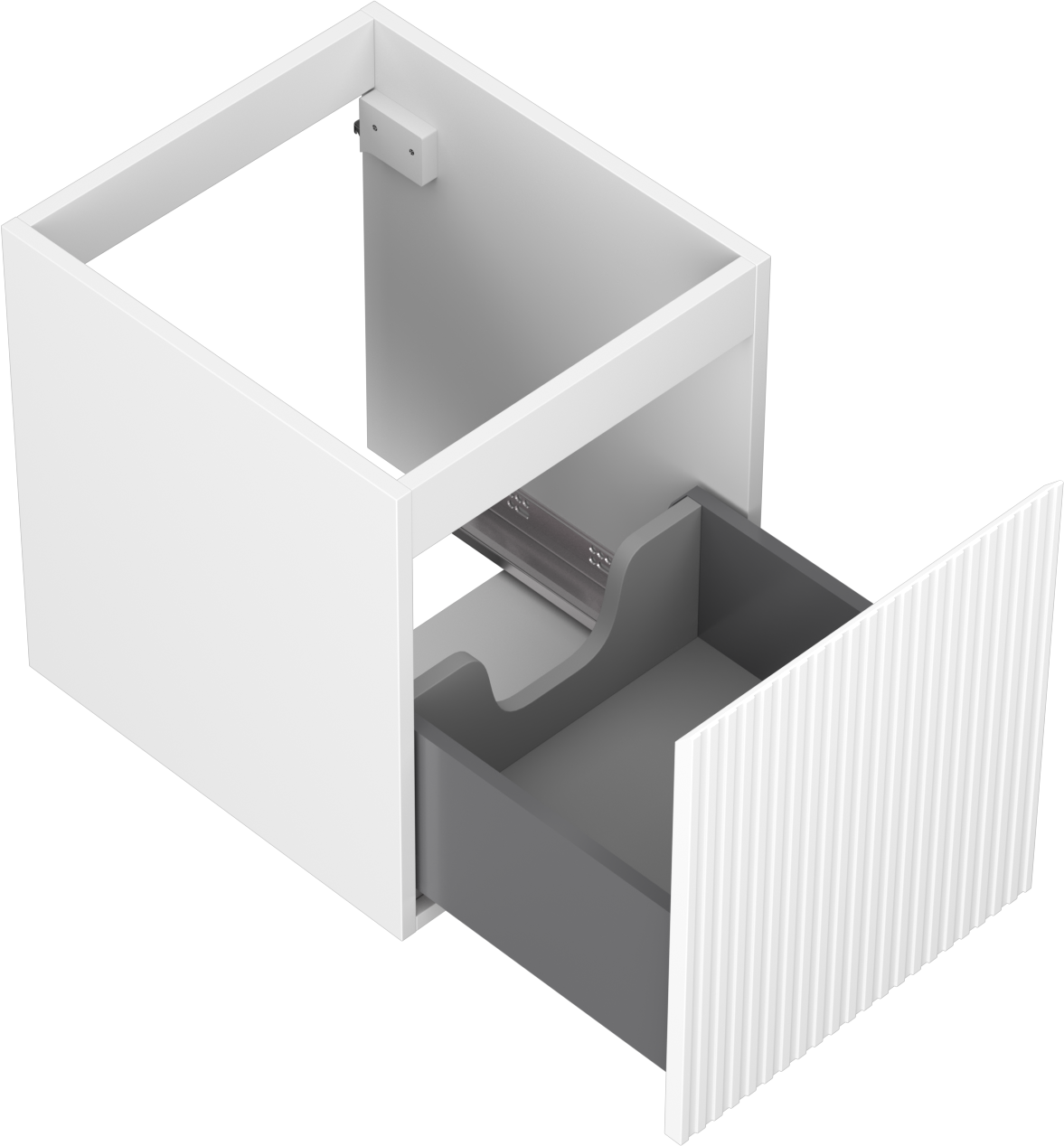 The cutout in the drawer is designed in such a way as to accommodate the siphon, which is essential in sink installations. This allows the furniture to be fully functional without having to give up drawer space for the installation.