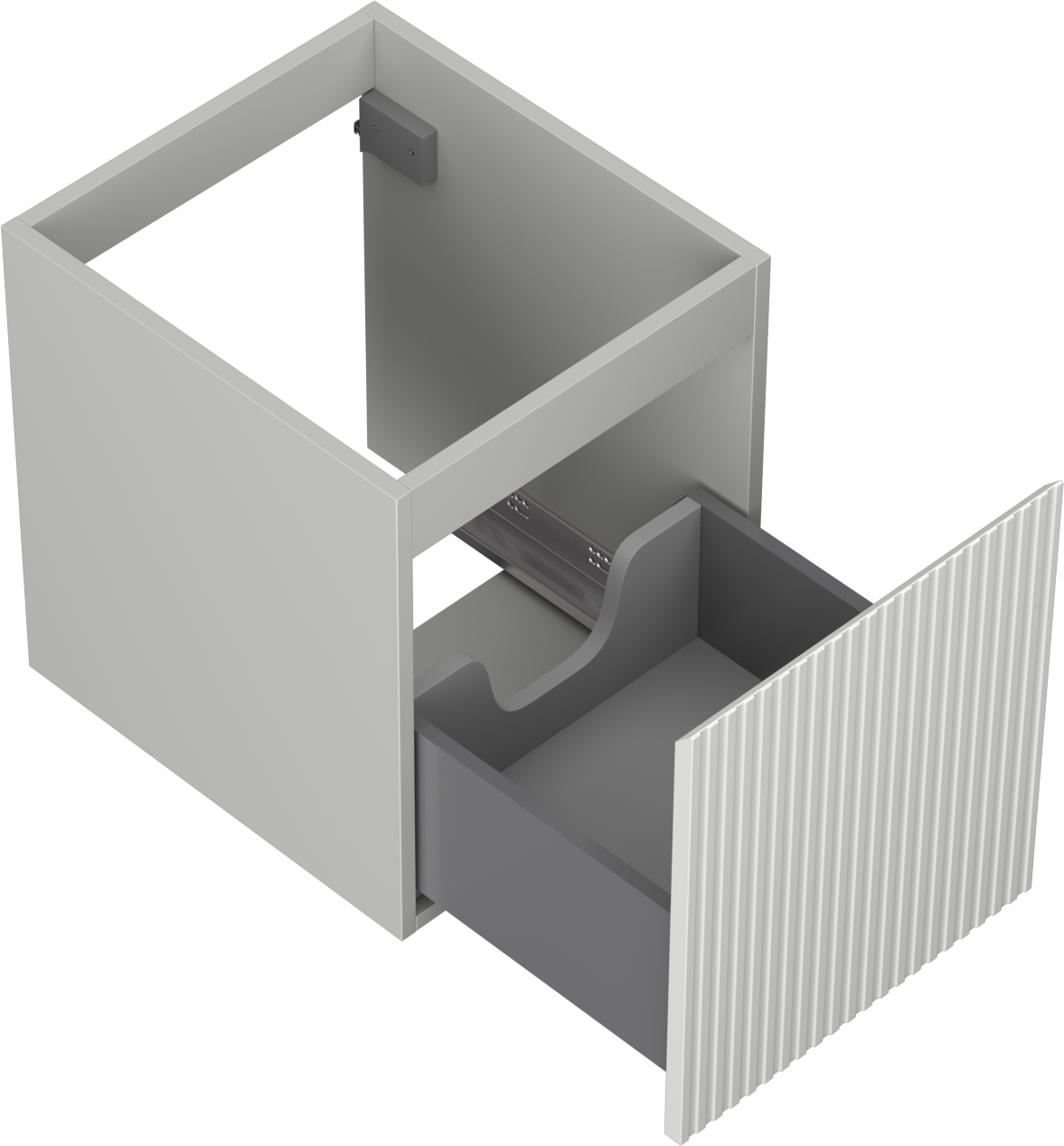 The cutout in the drawer is designed in such a way as to accommodate the siphon, which is essential in sink installations. This allows the furniture to be fully functional without having to give up drawer space for the installation.
