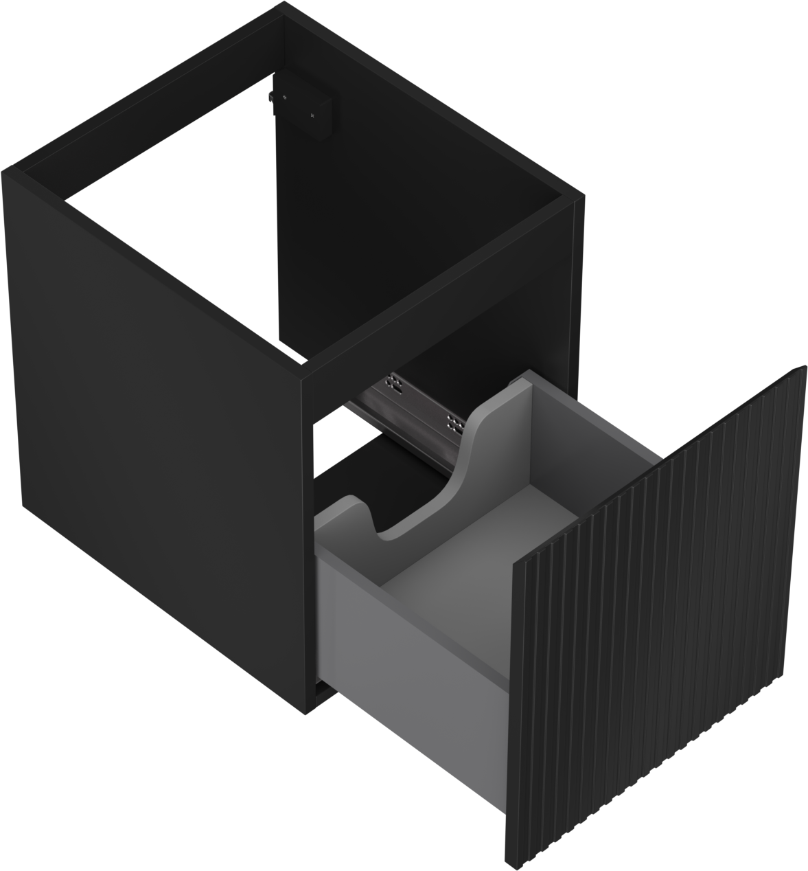 The cutout in the drawer is designed in such a way as to accommodate the siphon, which is essential in sink installations. This allows the furniture to be fully functional without having to give up drawer space for the installation.