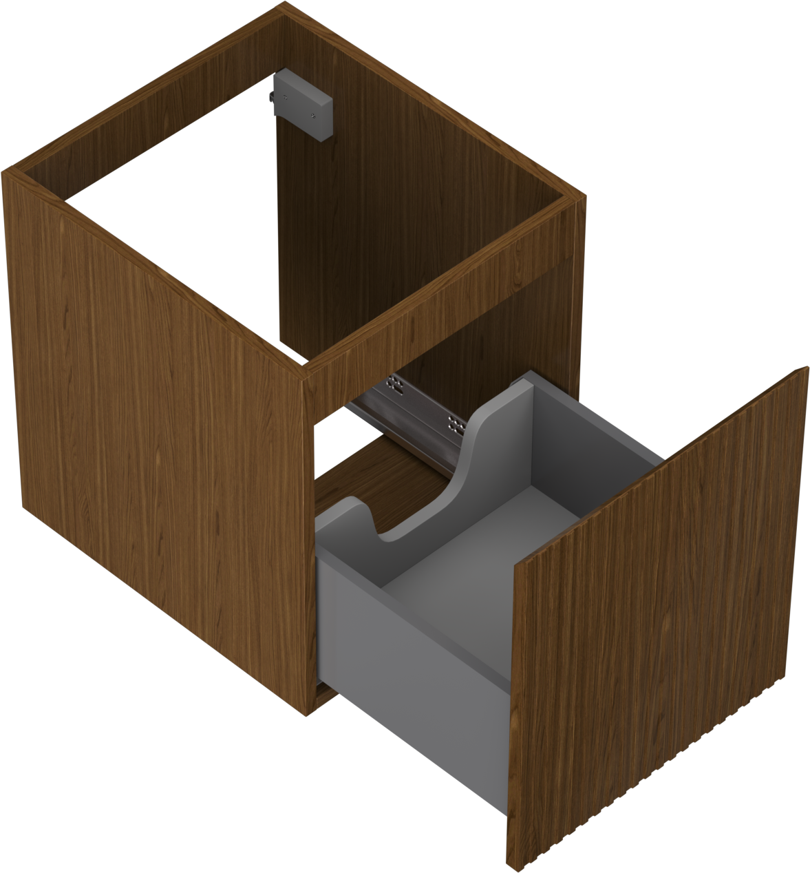 The cutout in the drawer is designed in such a way as to accommodate the siphon, which is essential in sink installations. This allows the furniture to be fully functional without having to give up drawer space for the installation.