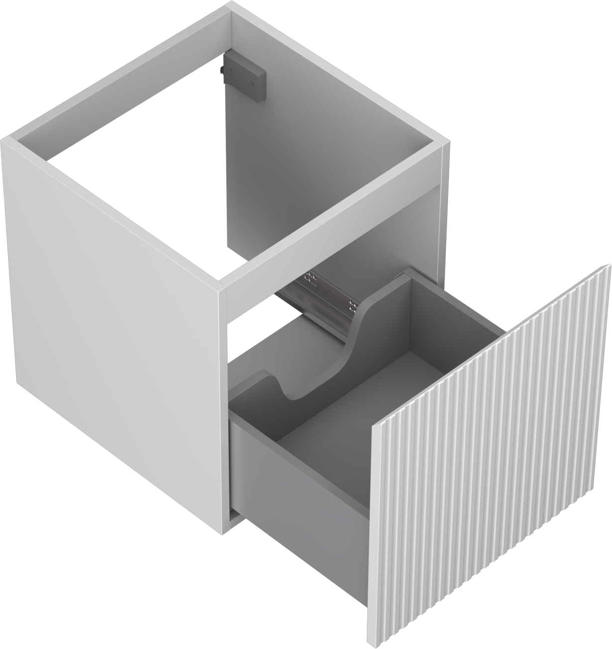 The cutout in the drawer is designed in such a way as to accommodate the siphon, which is essential in sink installations. This allows the furniture to be fully functional without having to give up drawer space for the installation.