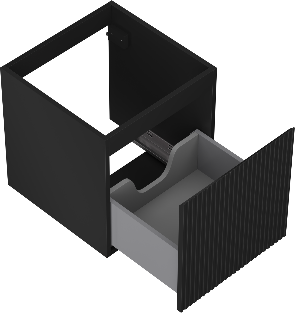 The cutout in the drawer is designed in such a way as to accommodate the siphon, which is essential in sink installations. This allows the furniture to be fully functional without having to give up drawer space for the installation.