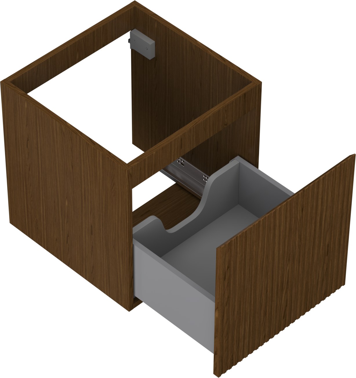 The cutout in the drawer is designed in such a way as to accommodate the siphon, which is essential in sink installations. This allows the furniture to be fully functional without having to give up drawer space for the installation.