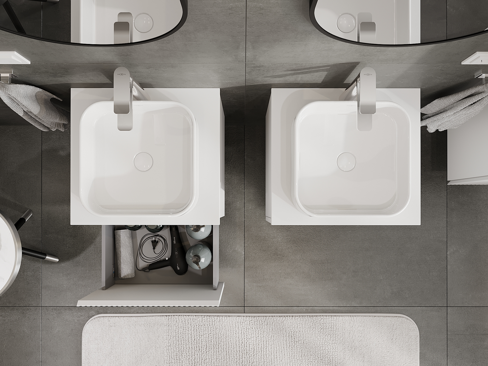 Our modular bathroom furniture can be combined in various colour configurations, allowing for complete personalisation. You can choose both the appearance and functions of individual elements, enabling you to adapt the furniture to your own stylistic and functional preferences.