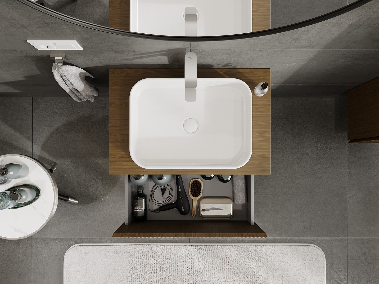 Our modular bathroom furniture can be combined in various colour configurations, allowing for complete personalisation. You can choose both the appearance and functions of individual elements, enabling you to adapt the furniture to your own stylistic and functional preferences.