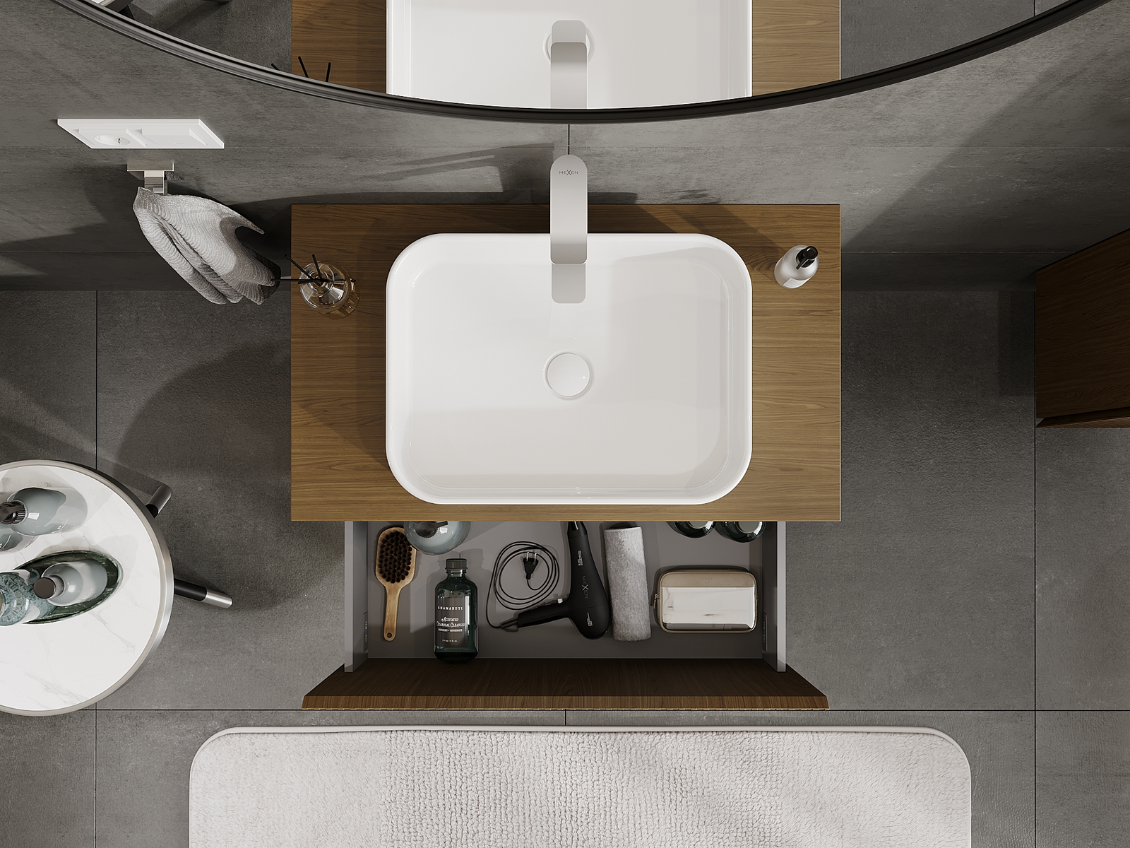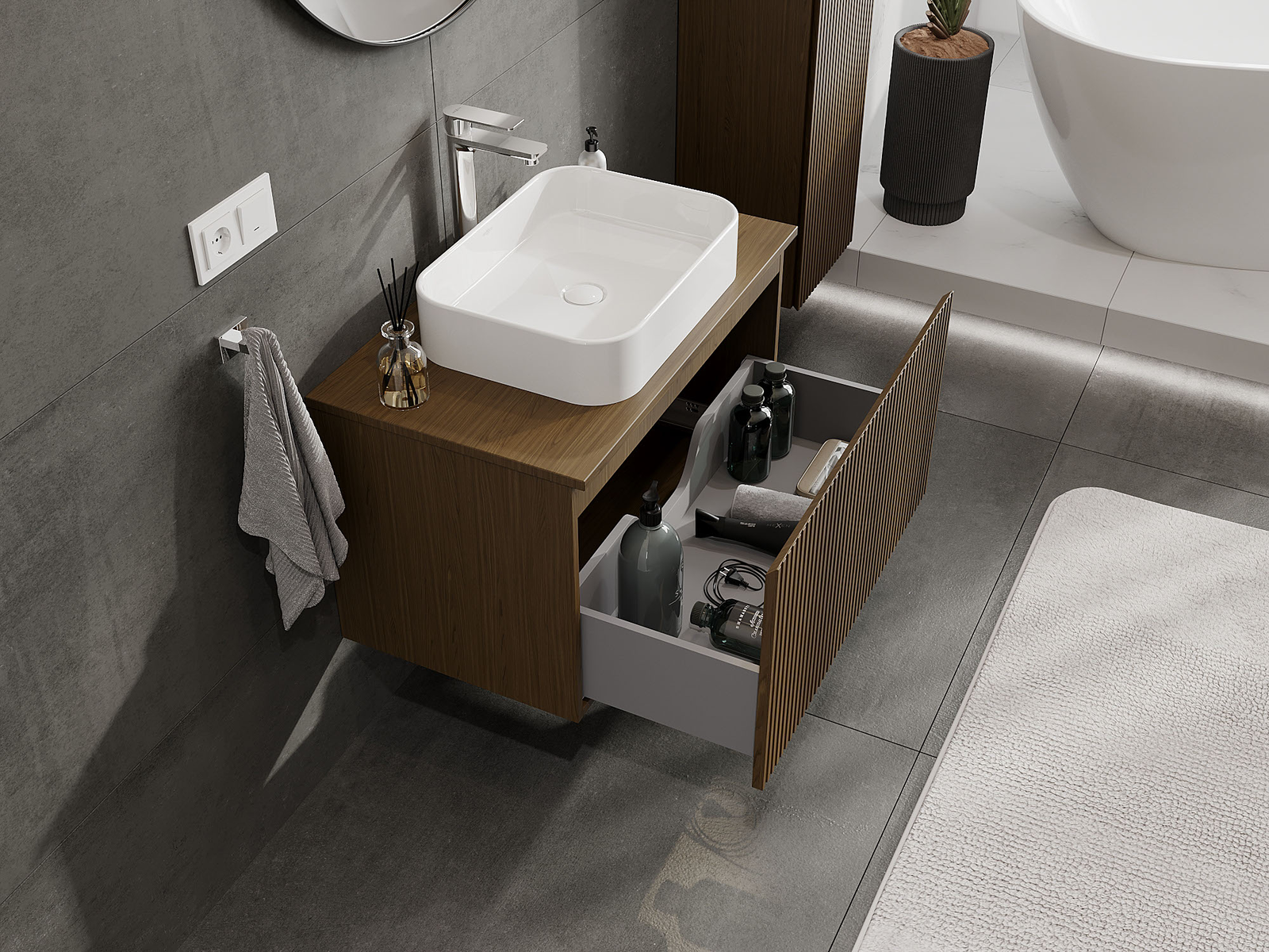 Our modular bathroom furniture can be combined in various colour configurations, allowing for complete personalisation. You can choose both the appearance and functions of individual elements, enabling you to adapt the furniture to your own stylistic and functional preferences.