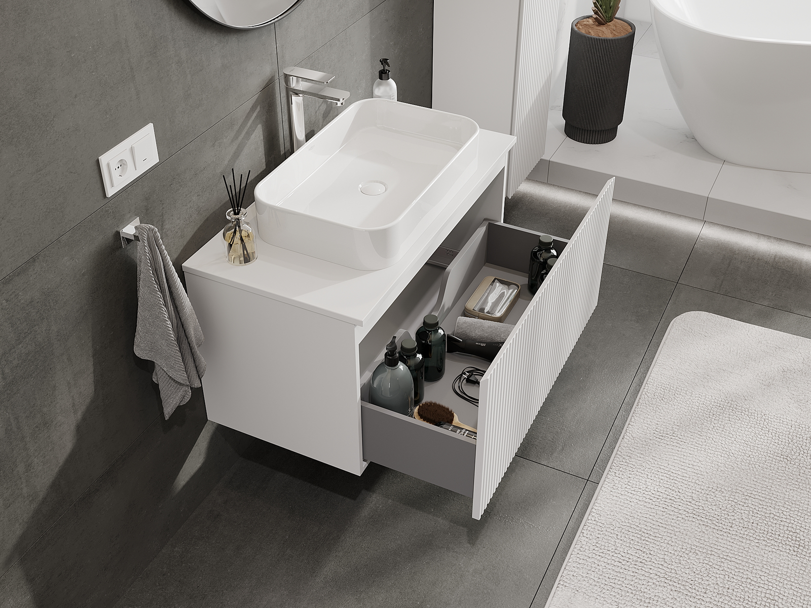 The cabinet carcass is delivered fully assembled, which means maximum convenience and time savings. You don't have to spend hours assembling the furniture – just install it in your chosen spot in the bathroom. This is an ideal solution for those who appreciate quick assembly and immediate results.