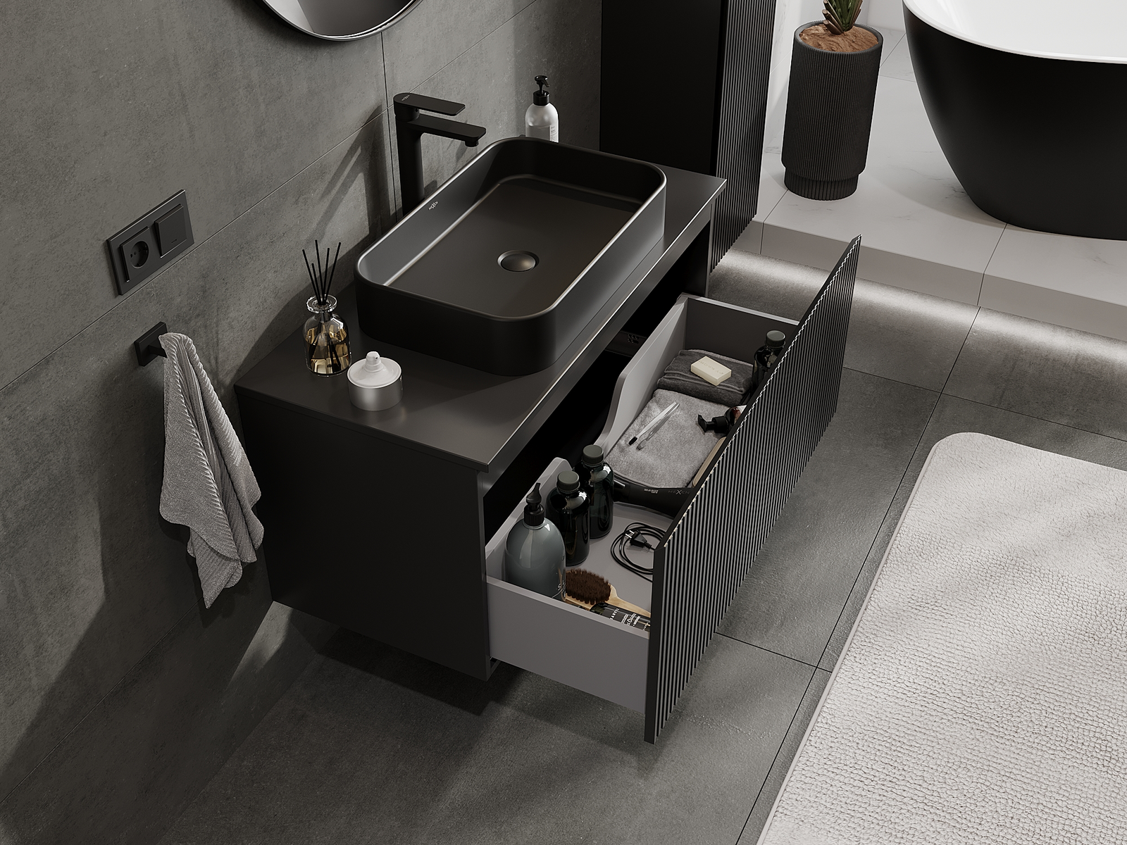 Our modular bathroom furniture can be combined in various colour configurations, allowing for complete personalisation. You can choose both the appearance and functions of individual elements, enabling you to adapt the furniture to your own stylistic and functional preferences.