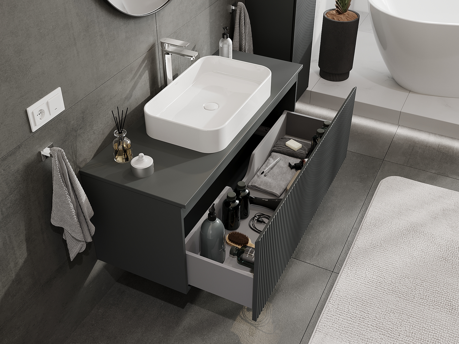 Our modular bathroom furniture can be combined in various colour configurations, allowing for complete personalisation. You can choose both the appearance and functions of individual elements, enabling you to adapt the furniture to your own stylistic and functional preferences.