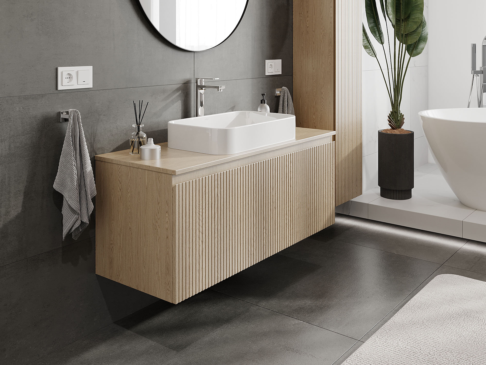 Our modular bathroom furniture can be combined in various colour configurations, allowing for complete personalisation. You can choose both the appearance and functions of individual elements, enabling you to adapt the furniture to your own stylistic and functional preferences.