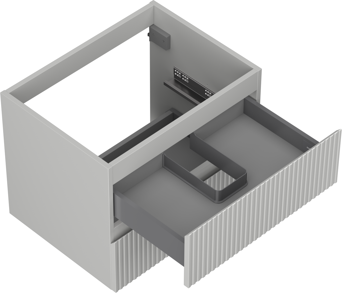 The cutout in the drawer is designed in such a way as to accommodate the siphon, which is essential in sink installations. This allows the furniture to be fully functional without having to give up drawer space for the installation.
