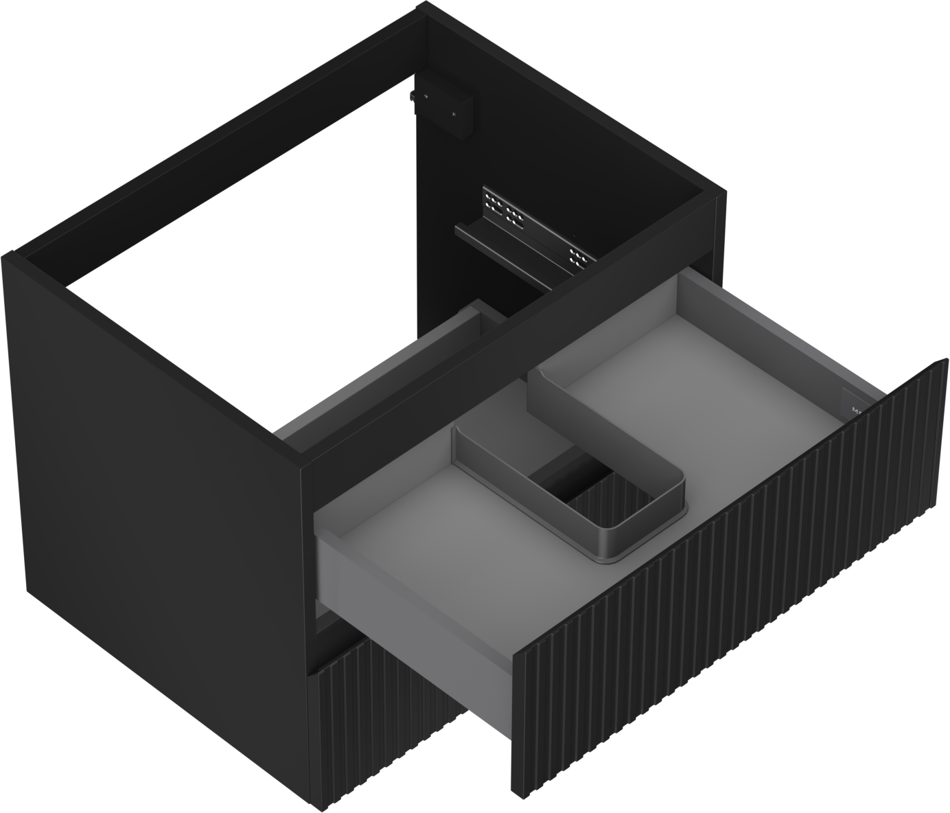 The cutout in the drawer is designed in such a way as to accommodate the siphon, which is essential in sink installations. This allows the furniture to be fully functional without having to give up drawer space for the installation.