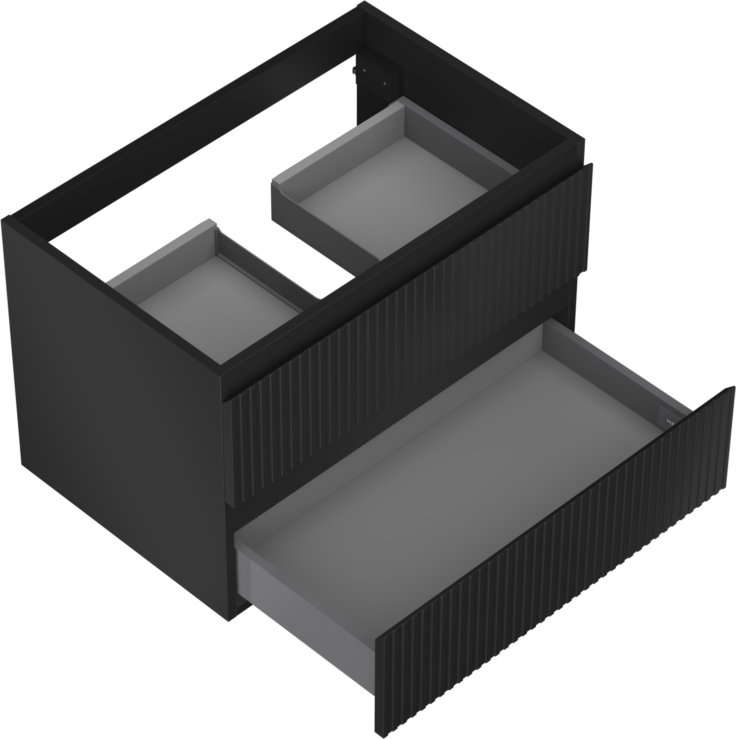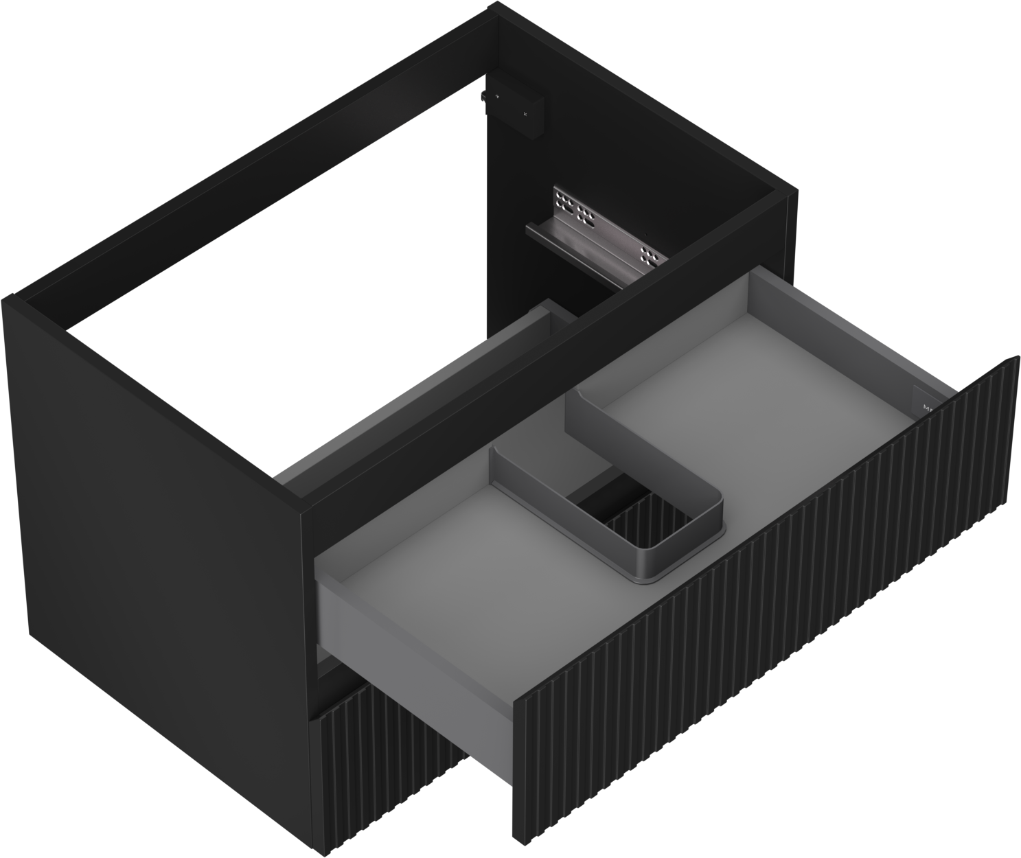 The cutout in the drawer is designed in such a way as to accommodate the siphon, which is essential in sink installations. This allows the furniture to be fully functional without having to give up drawer space for the installation.