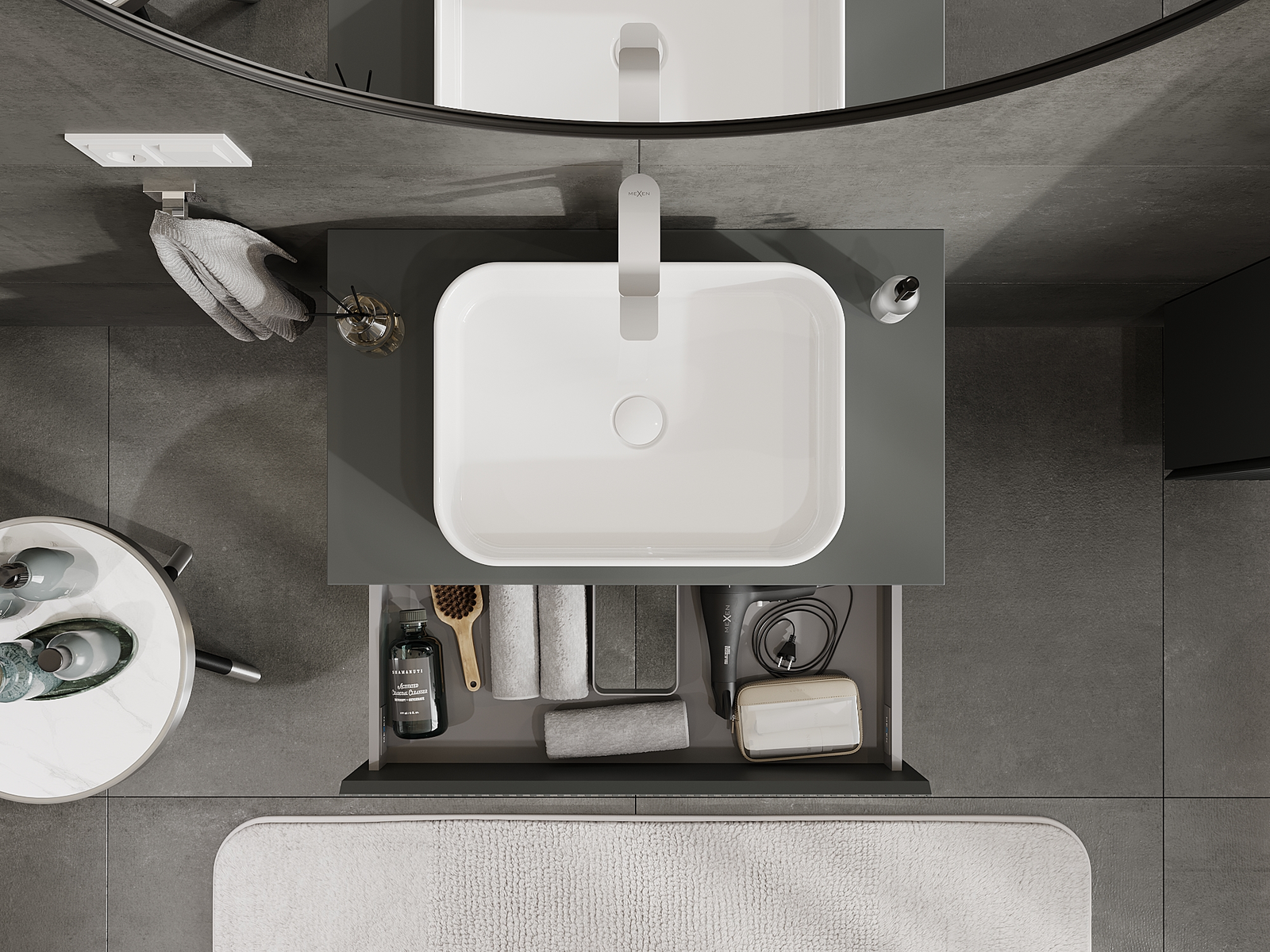 Our modular bathroom furniture can be combined in various colour configurations, allowing for complete personalisation. You can choose both the appearance and functions of individual elements, enabling you to adapt the furniture to your own stylistic and functional preferences.