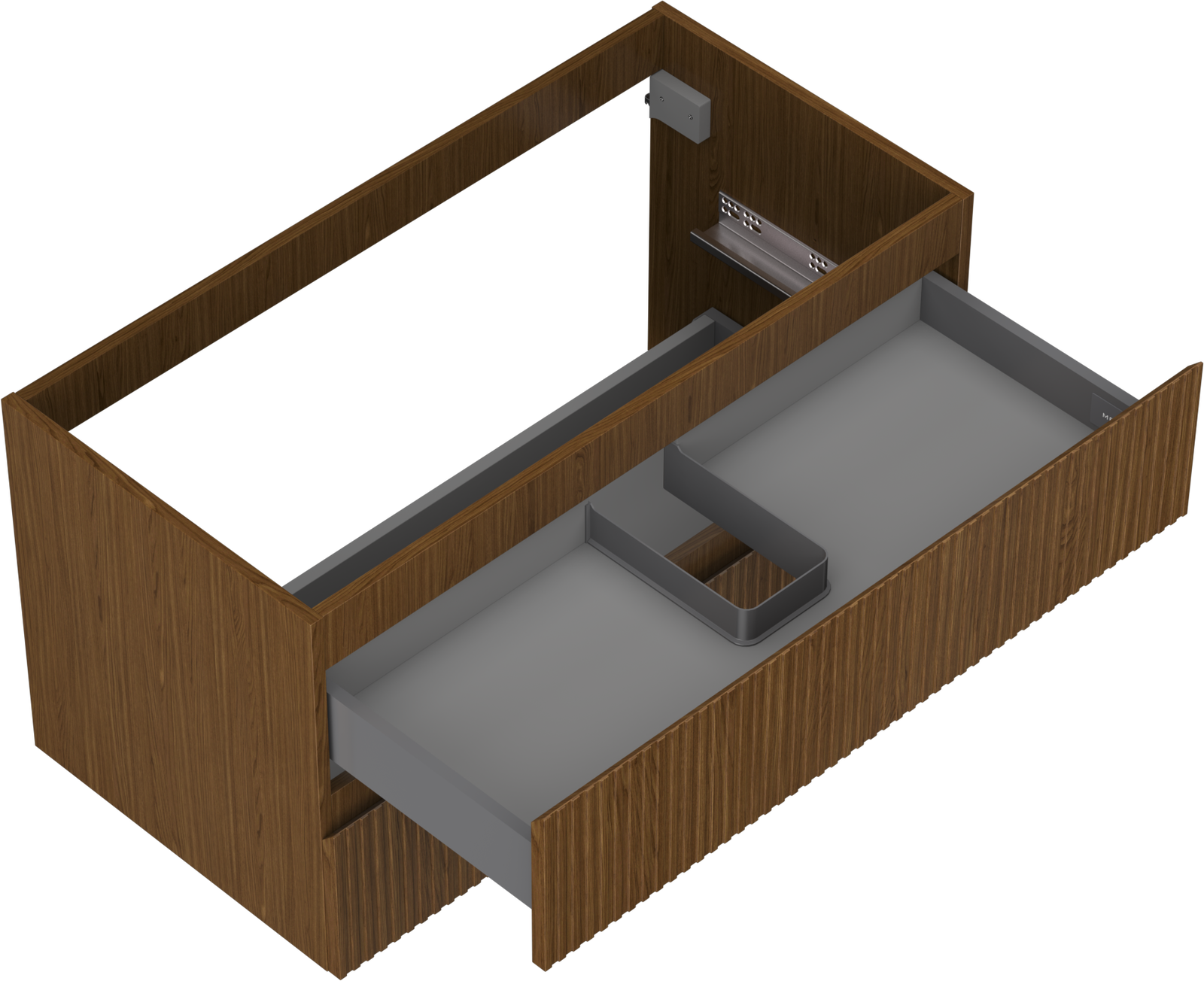 The cutout in the drawer is designed in such a way as to accommodate the siphon, which is essential in sink installations. This allows the furniture to be fully functional without having to give up drawer space for the installation.