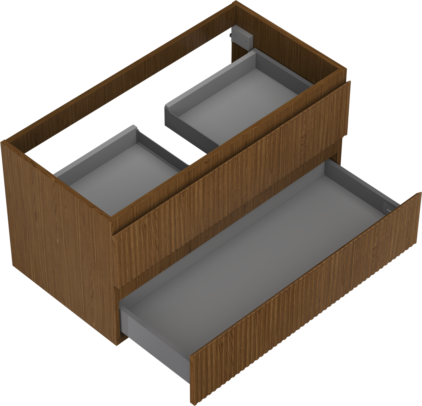 Mexen Rivel bathroom cabinet with sink 90 cm, 2 drawers, fluted, walnut - 91A20-09047-2-BFF86