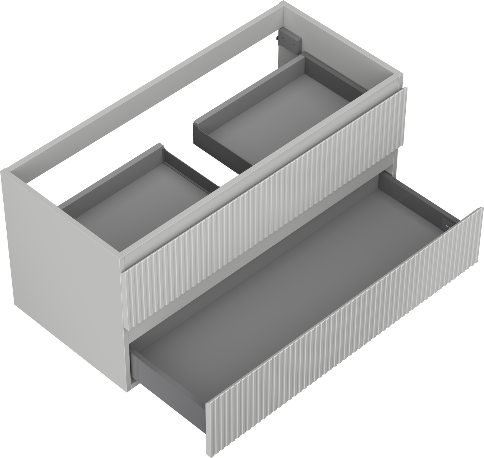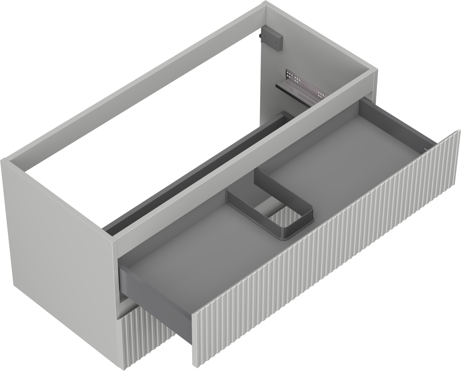 The cutout in the drawer is designed in such a way as to accommodate the siphon, which is essential in sink installations. This allows the furniture to be fully functional without having to give up drawer space for the installation.