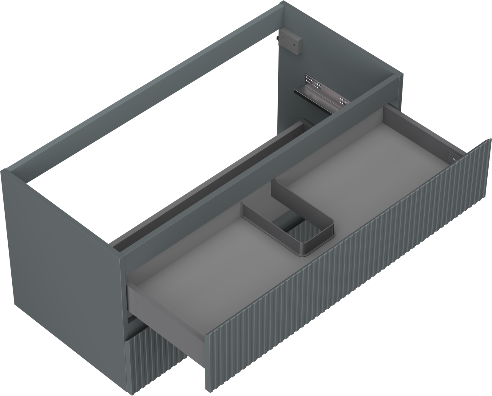 The cutout in the drawer is designed in such a way as to accommodate the siphon, which is essential in sink installations. This allows the furniture to be fully functional without having to give up drawer space for the installation.