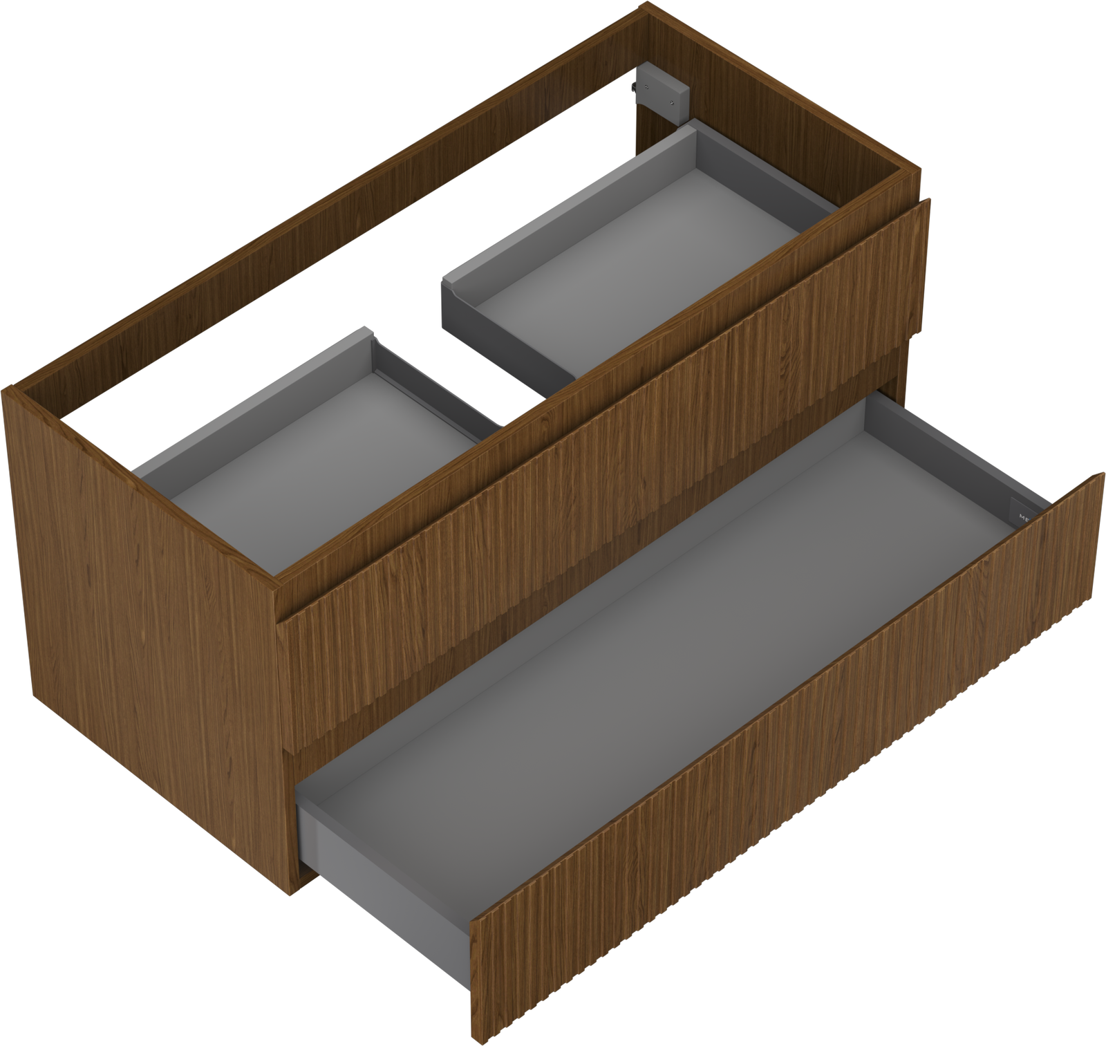 The cutout in the drawer is designed in such a way as to accommodate the siphon, which is essential in sink installations. This allows the furniture to be fully functional without having to give up drawer space for the installation.