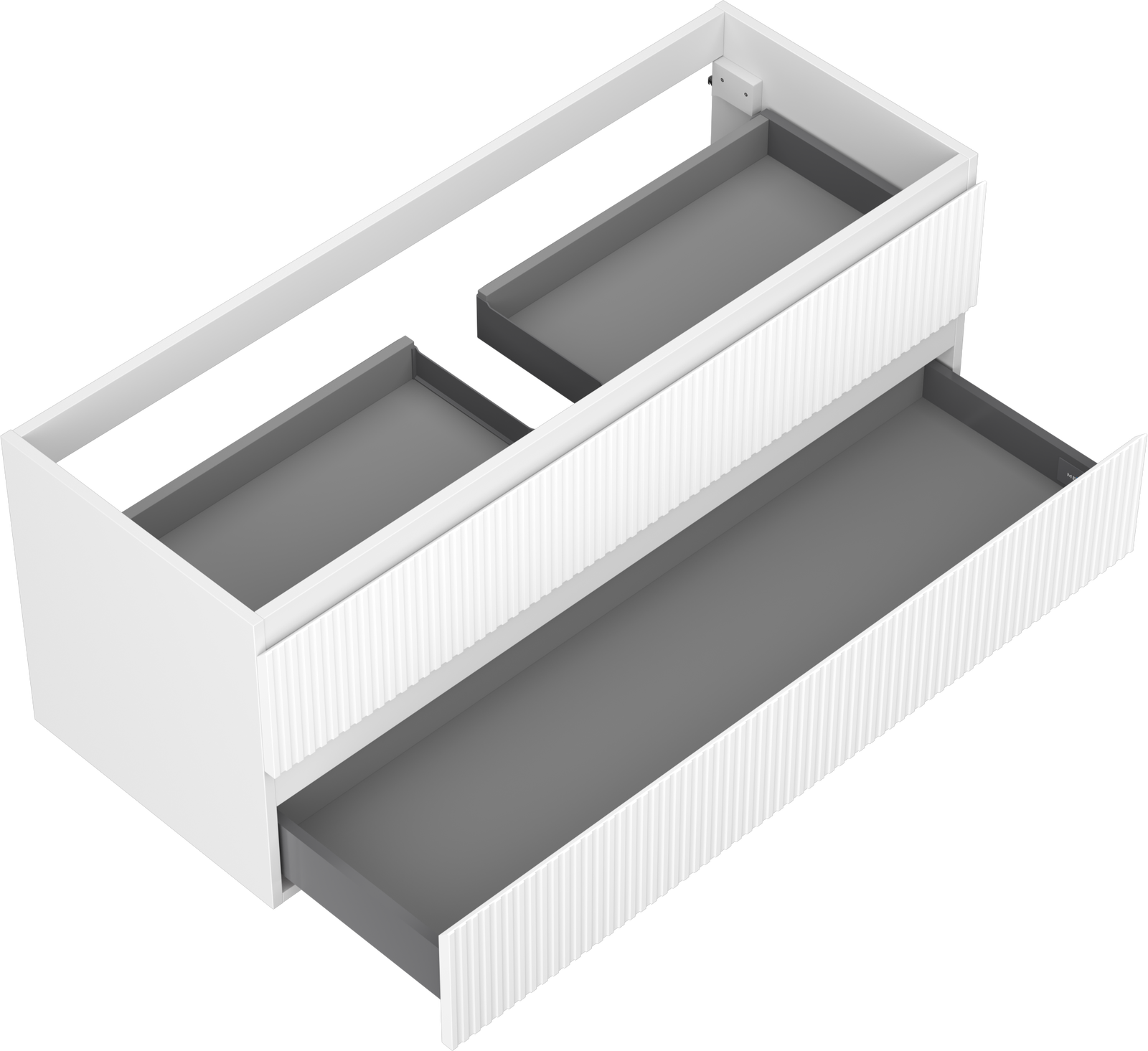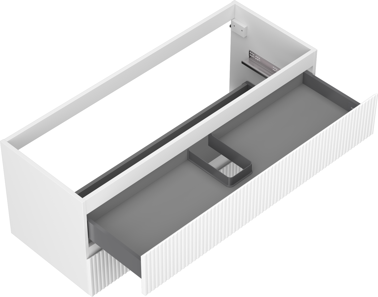 The cutout in the drawer is designed in such a way as to accommodate the siphon, which is essential in sink installations. This allows the furniture to be fully functional without having to give up drawer space for the installation.