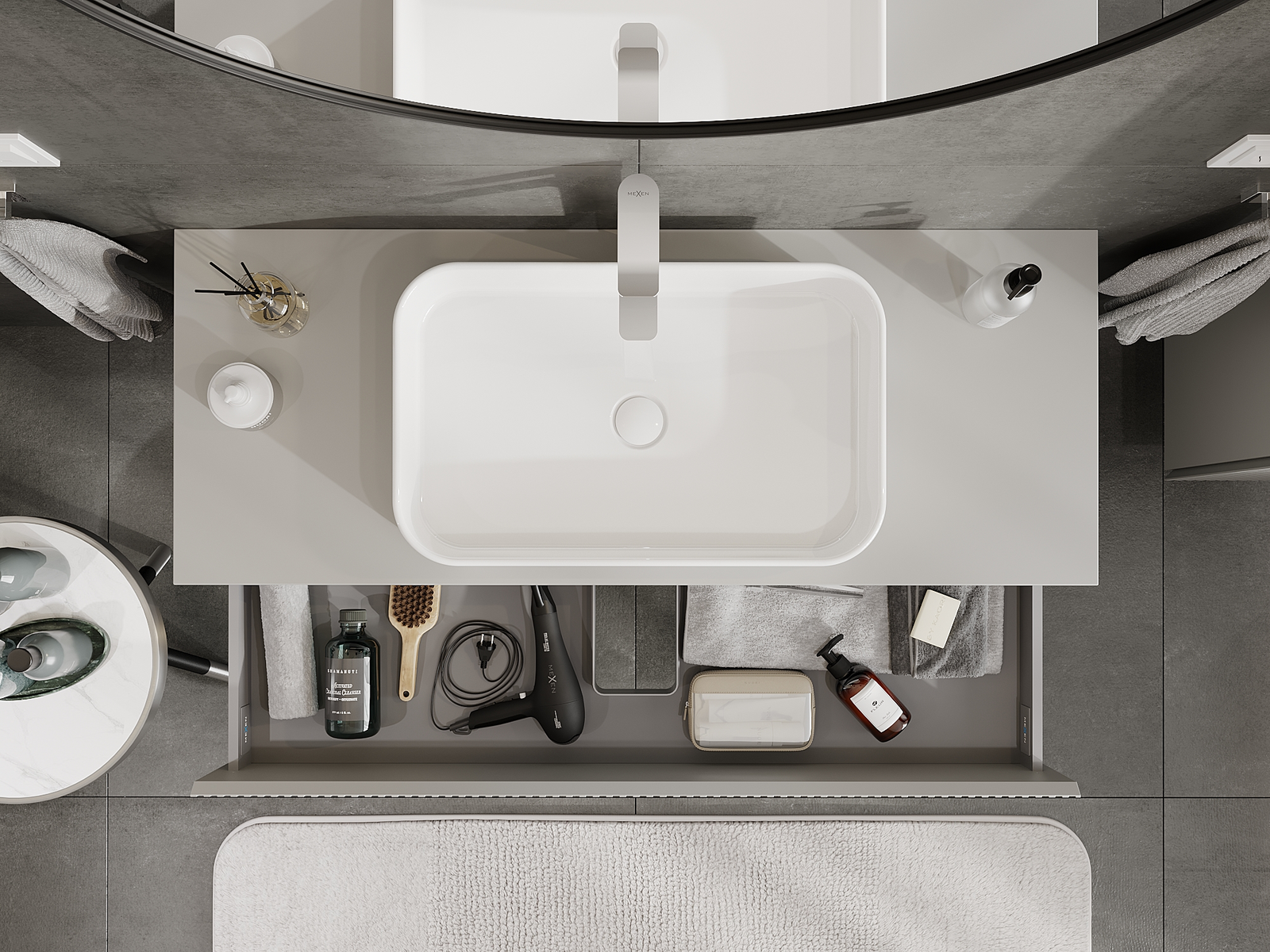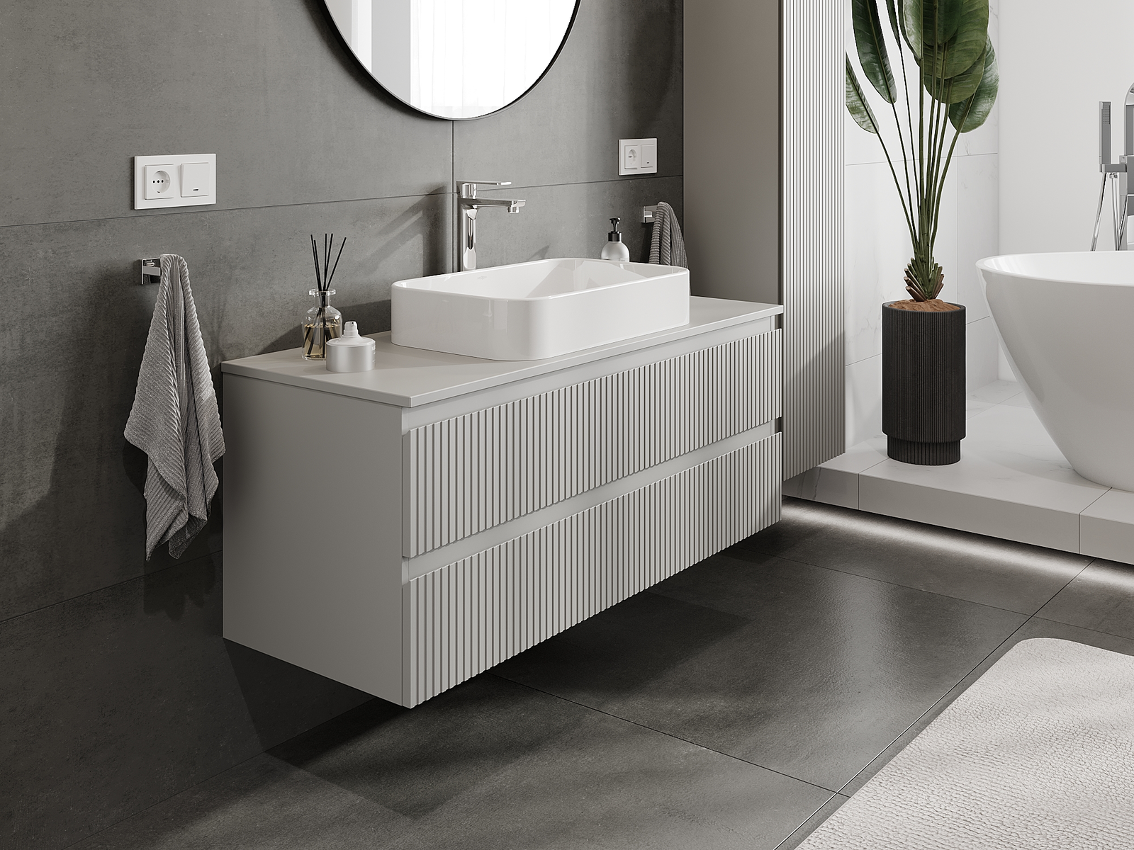 Our modular bathroom furniture can be combined in various colour configurations, allowing for complete personalisation. You can choose both the appearance and functions of individual elements, enabling you to adapt the furniture to your own stylistic and functional preferences.
