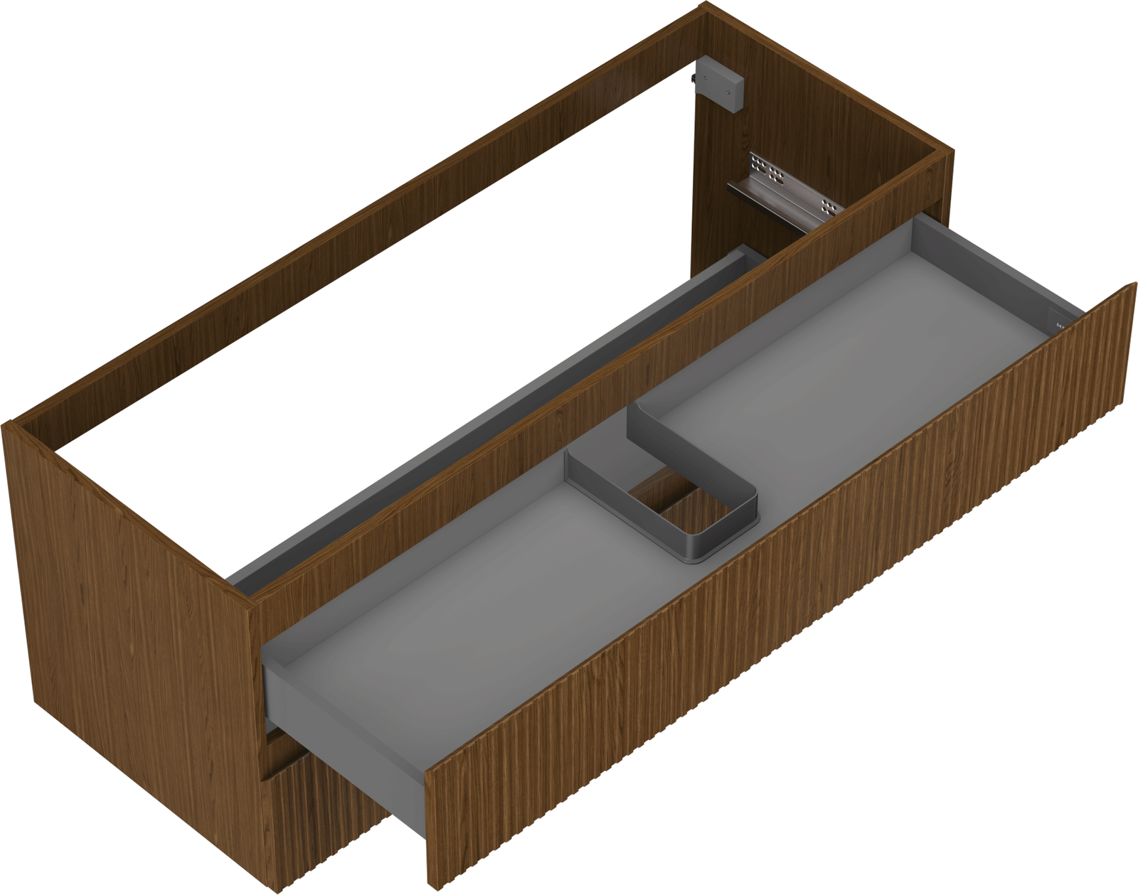 The cutout in the drawer is designed in such a way as to accommodate the siphon, which is essential in sink installations. This allows the furniture to be fully functional without having to give up drawer space for the installation.