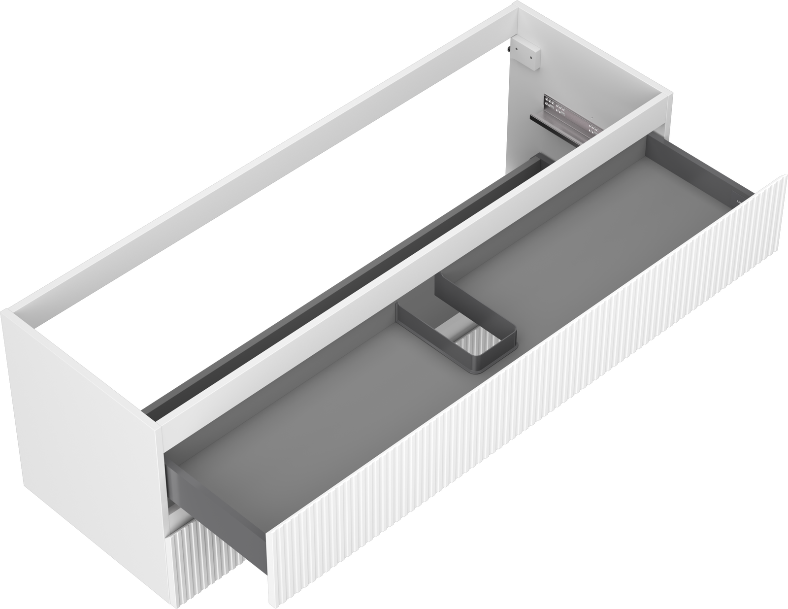 The cutout in the drawer is designed in such a way as to accommodate the siphon, which is essential in sink installations. This allows the furniture to be fully functional without having to give up drawer space for the installation.