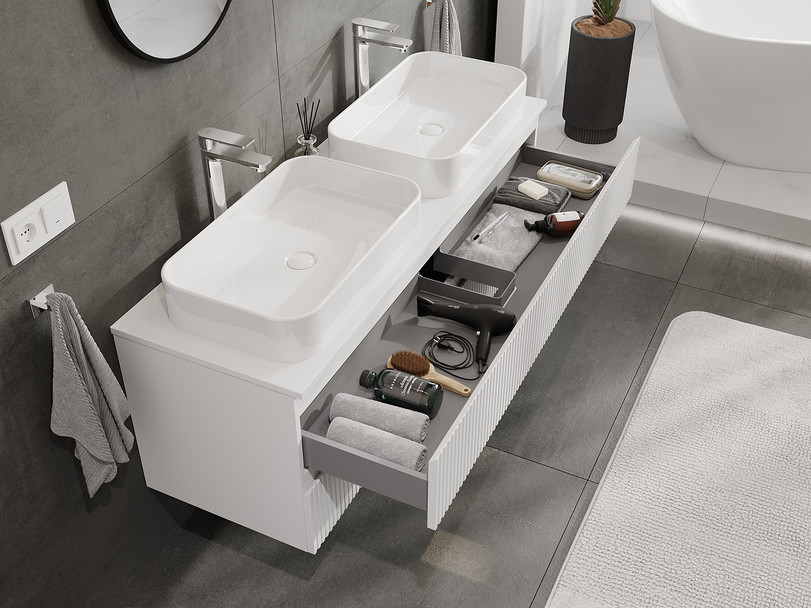 Our modular bathroom furniture can be combined in various colour configurations, allowing for complete personalisation. You can choose both the appearance and functions of individual elements, enabling you to adapt the furniture to your own stylistic and functional preferences.